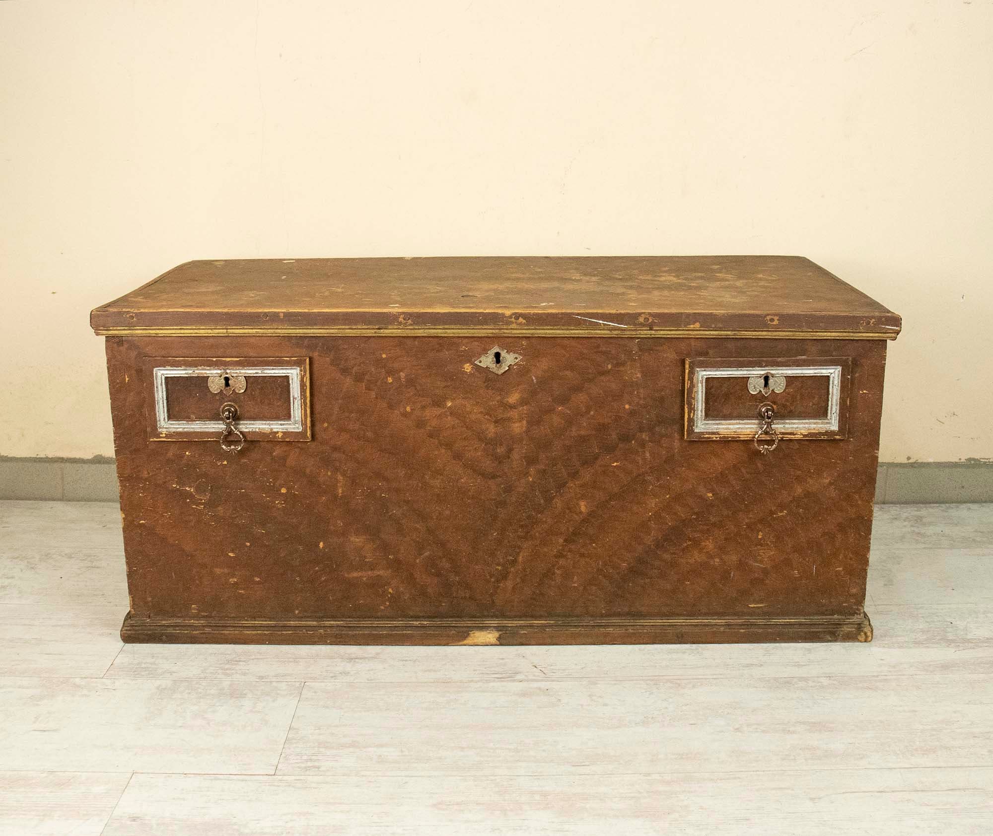 This is a beautiful traditional vintage countryside trunk made of wood. It is a lovely handcrafted piece of furniture used in the farms and village houses of rural Bulgaria back in the day. It is in a wonderful condition with a beautiful patina. The chest has been cleaned and treated against woodworm.
