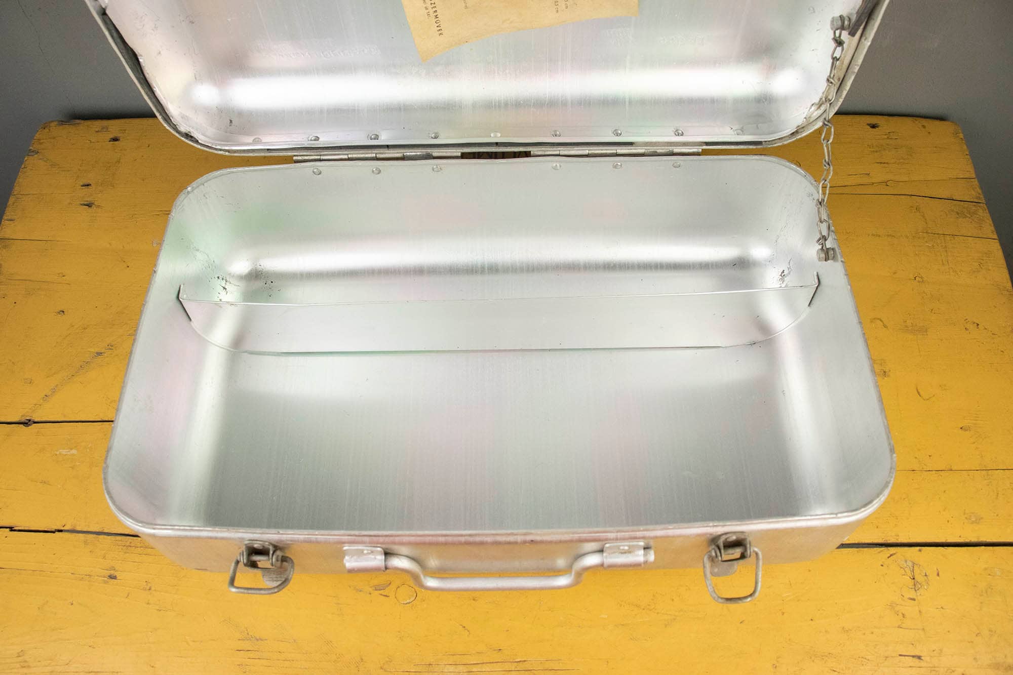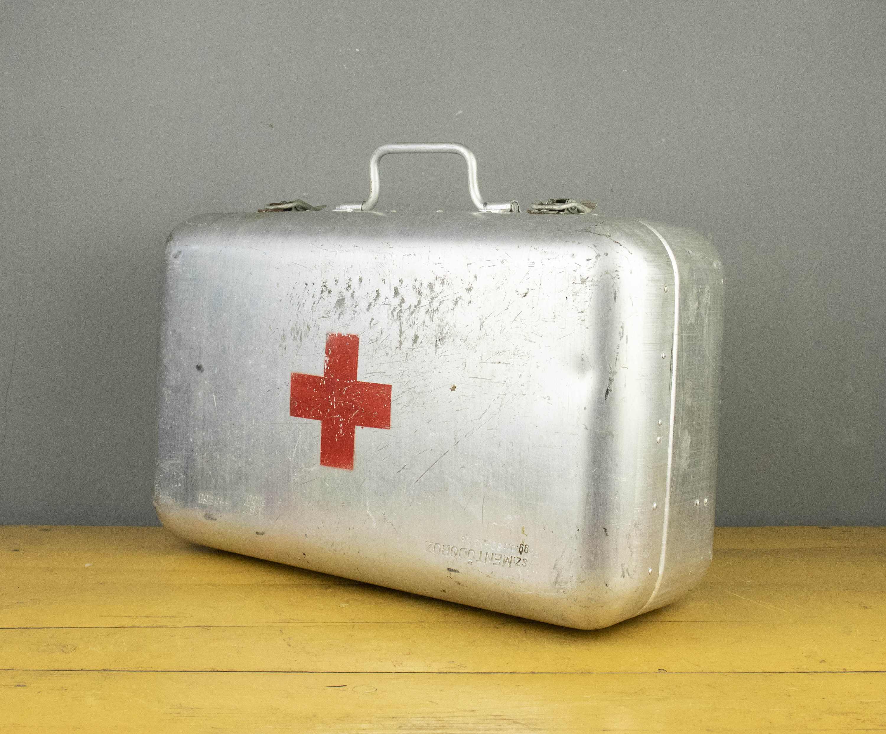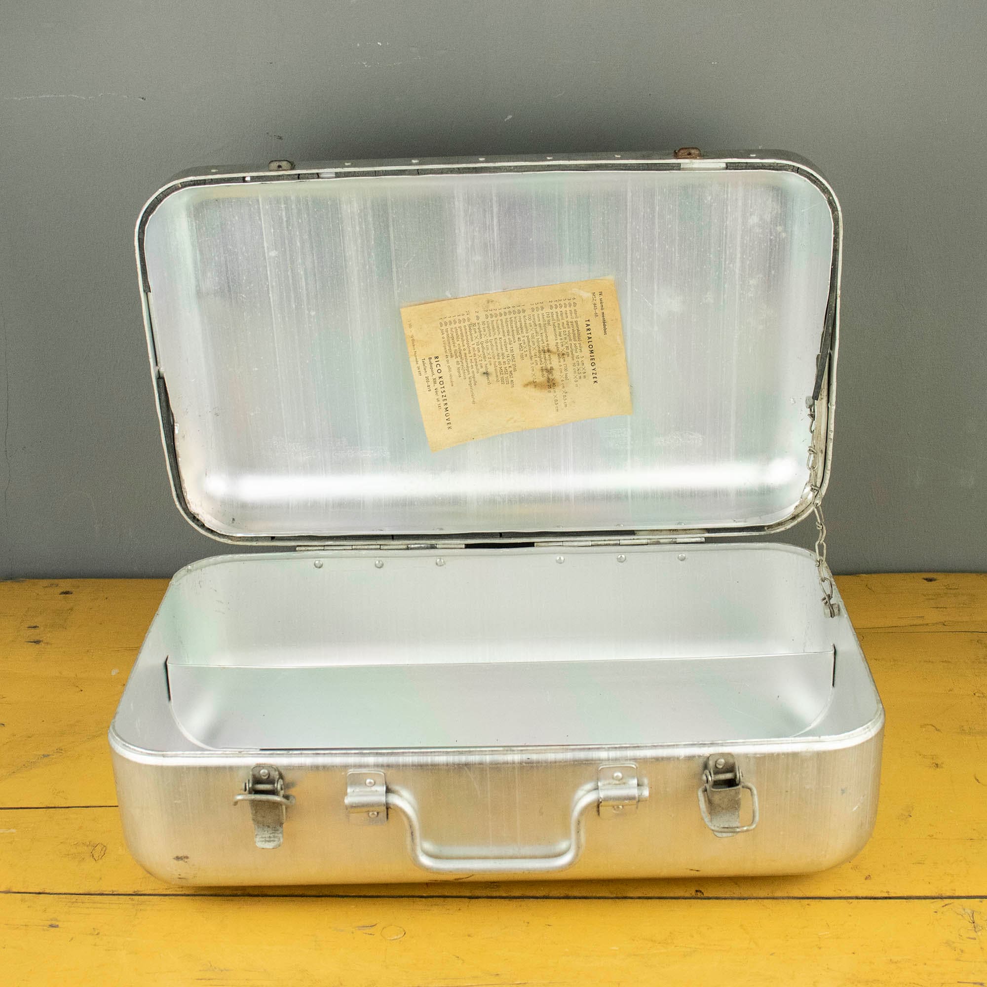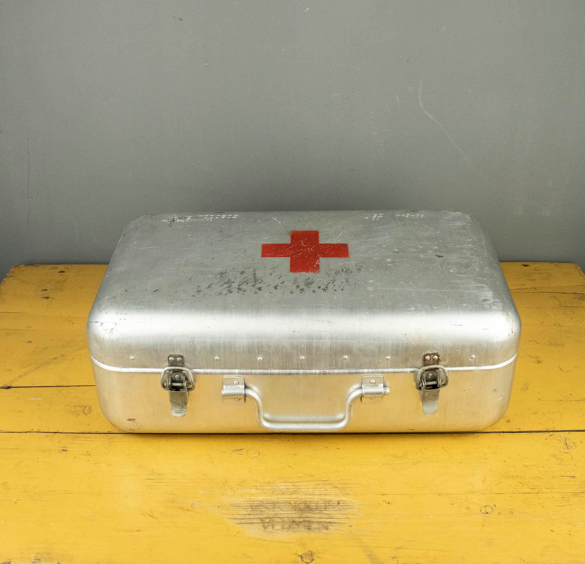 This is a great-looking vintage first aid metal box used in army trucks. It is in wonderful condition with minimal traces of usage. It is a classical aluminum box with a red cross and is a lovely vintage item that can be a lovely addition to a collection, a beautiful vintage decoration item, or even can be used again as a first aid box. The box is a genuine piece with great quality and is made to last.