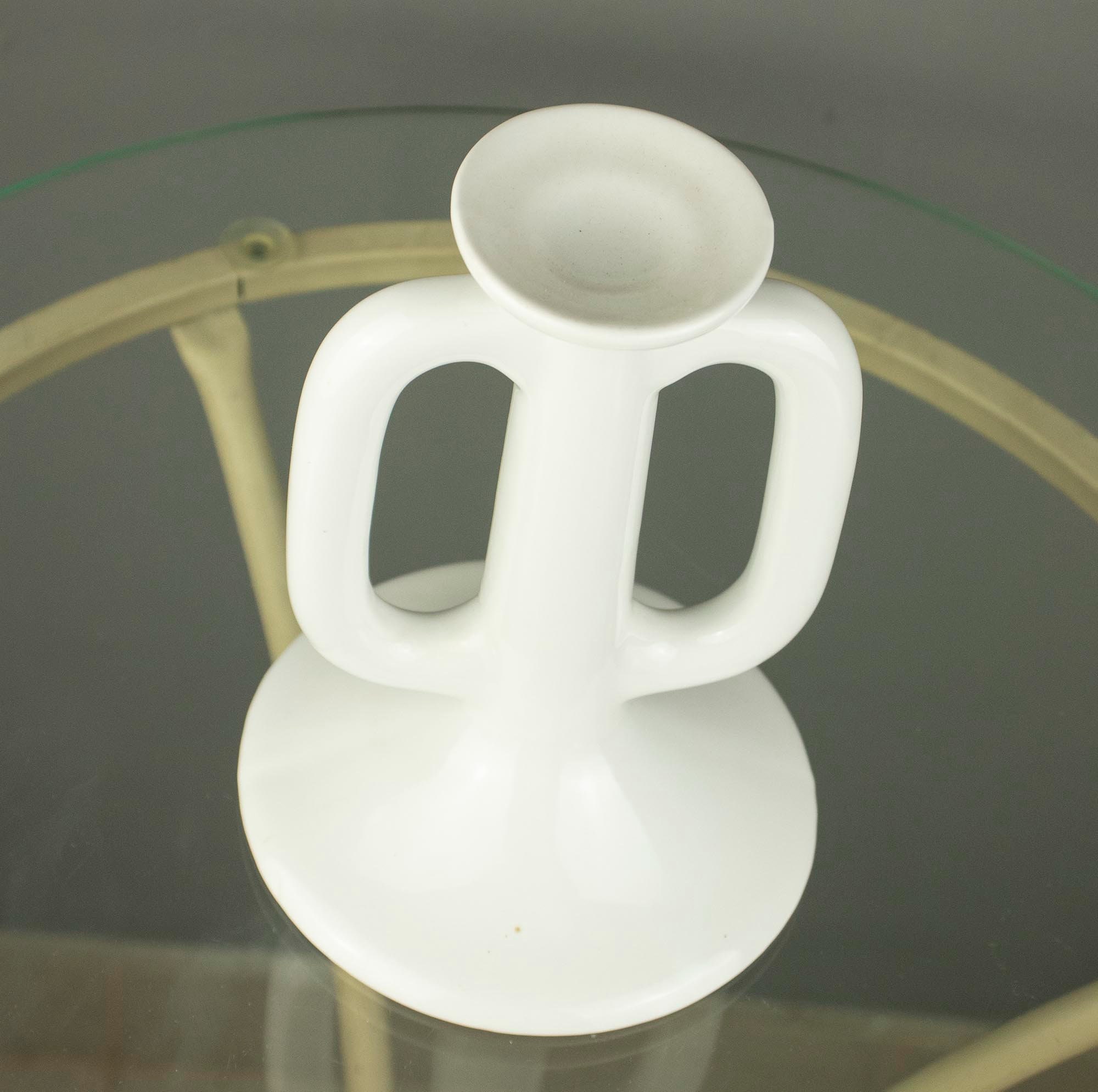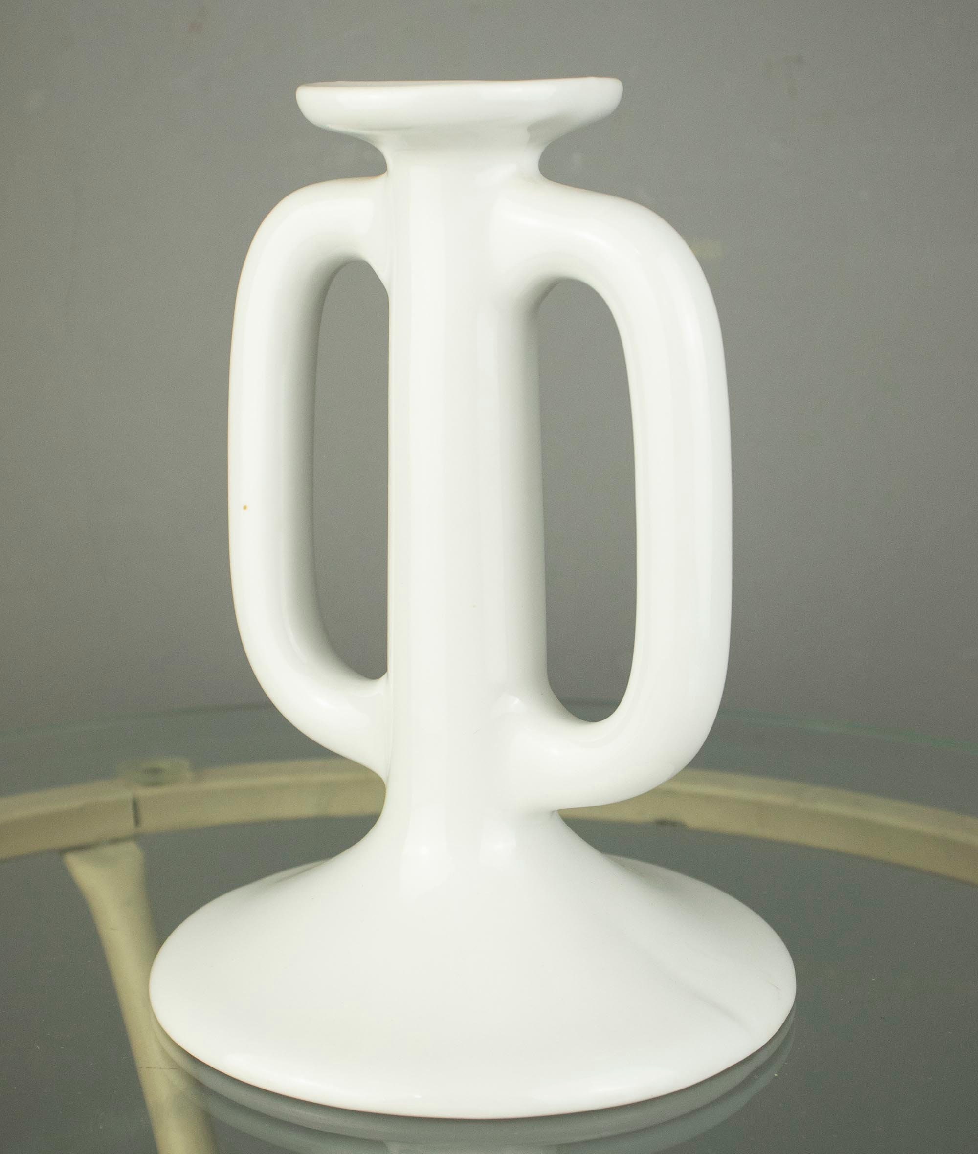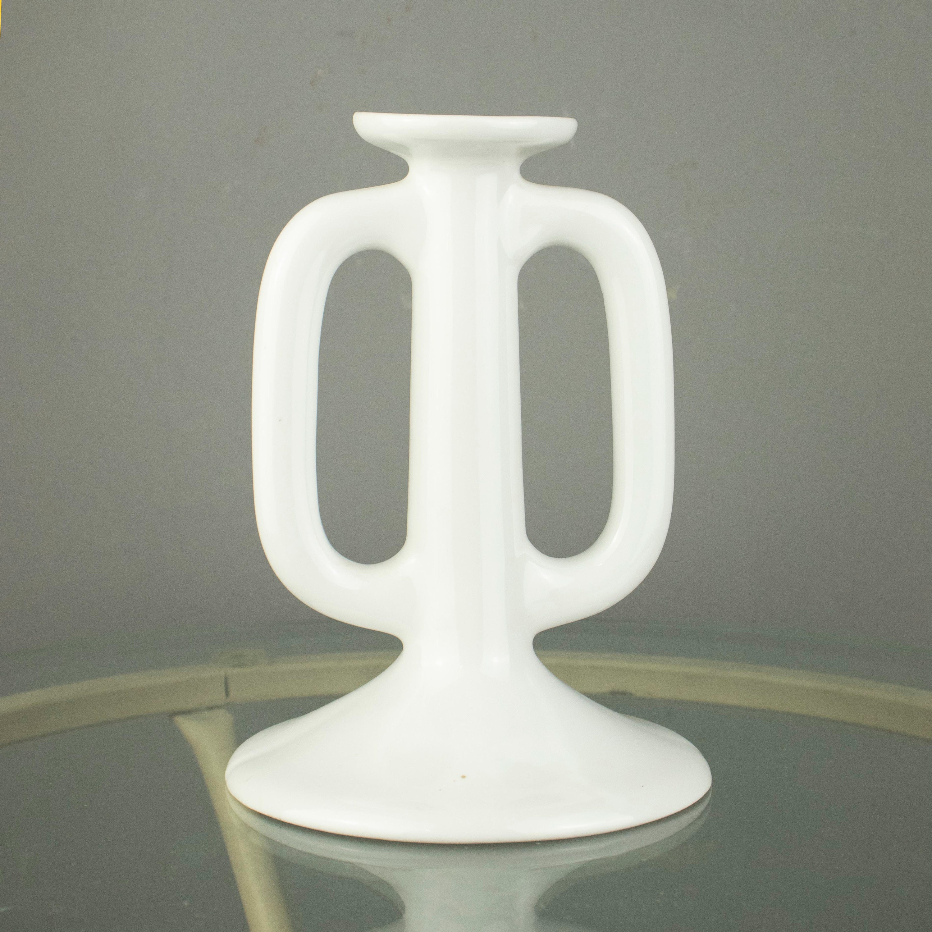 Lovely little candleholder made of porcelain. It is a genuine vintage candlestick holder with a beautiful smooth shape. The candle holder is in a great state with normal traces of usage. It is 19 cm high.