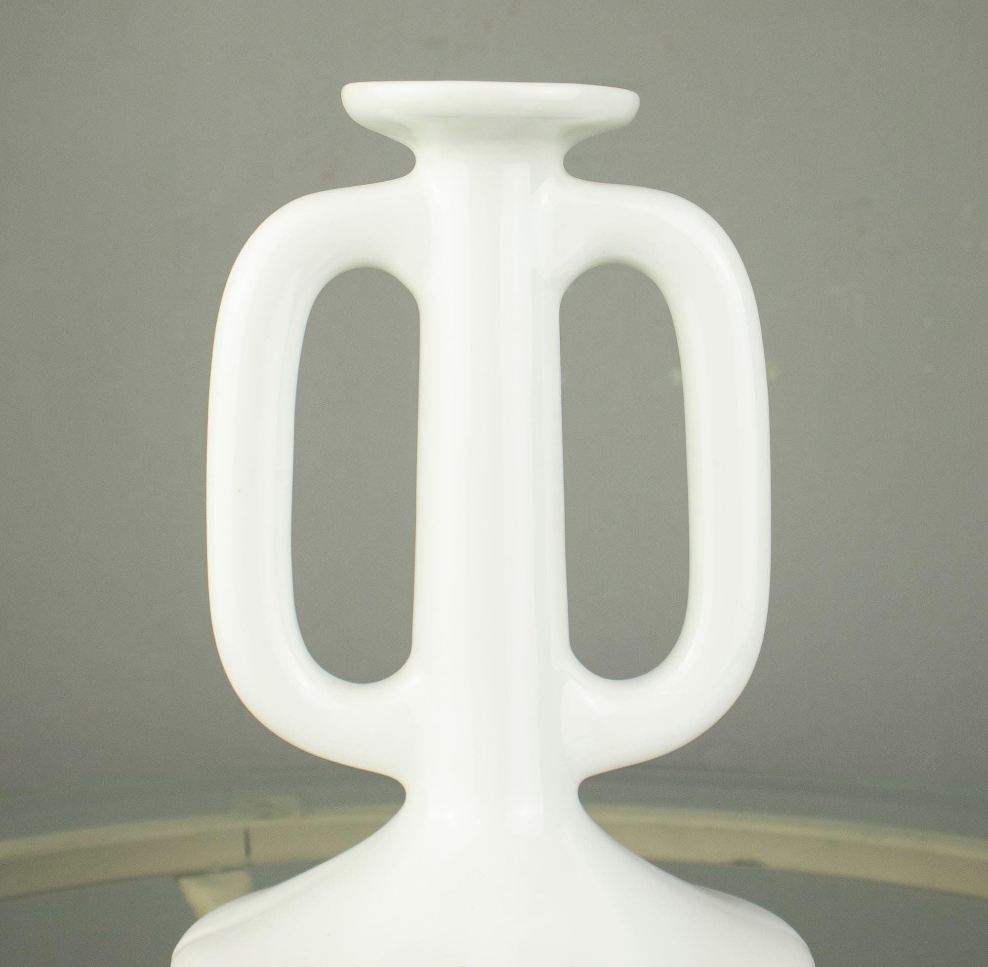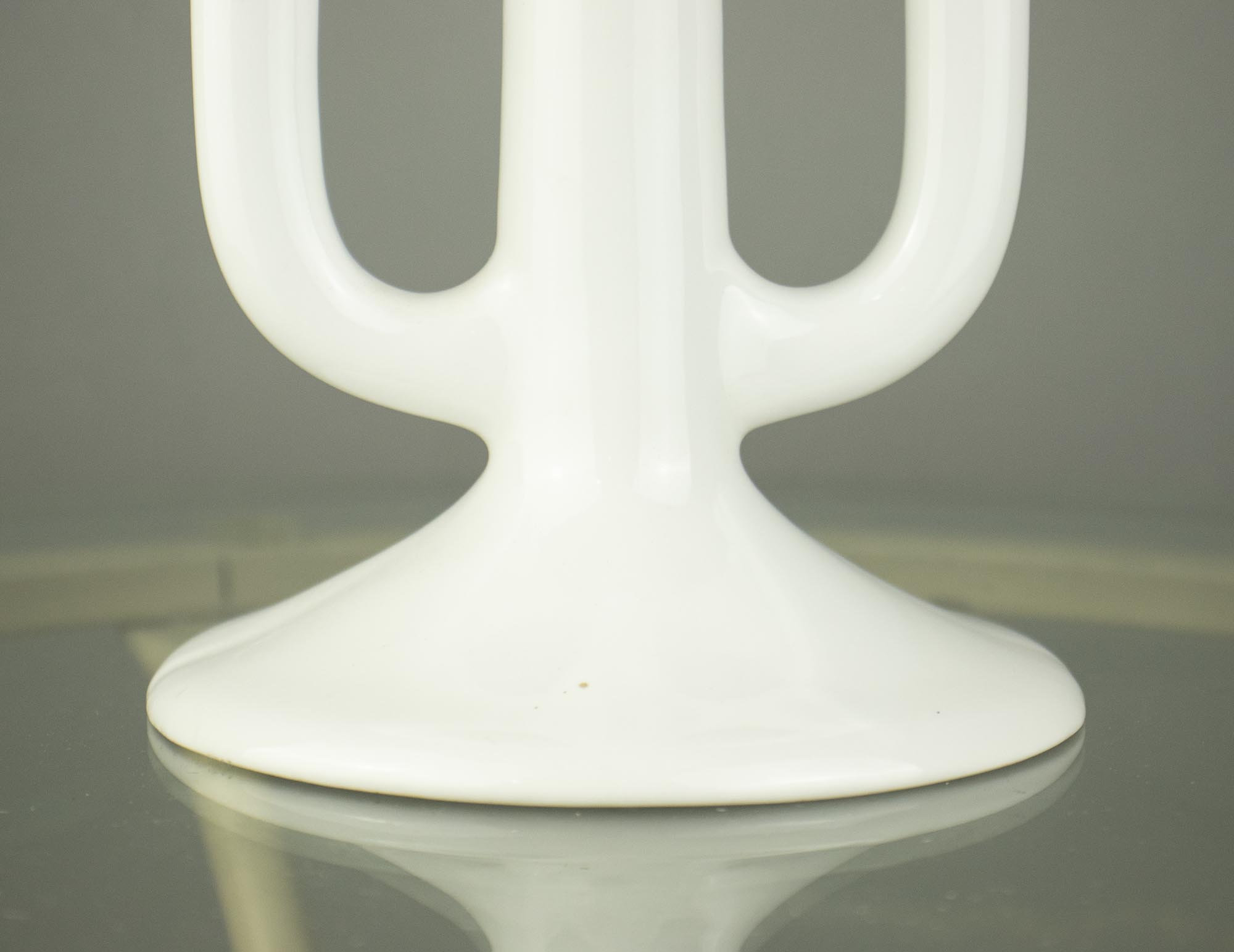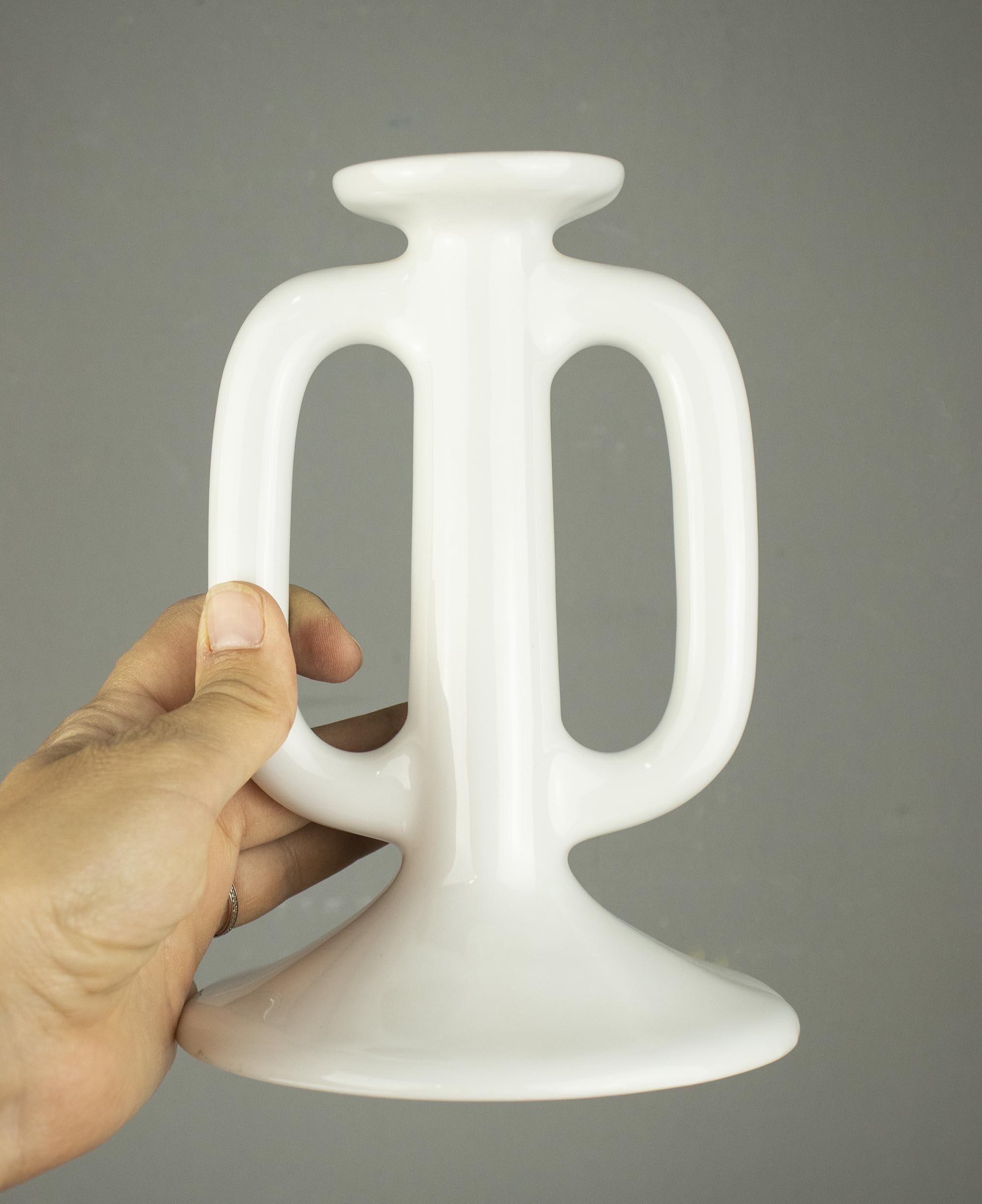 Lovely little candleholder made of porcelain. It is a genuine vintage candlestick holder with a beautiful smooth shape. The candle holder is in a great state with normal traces of usage. It is 19 cm high.