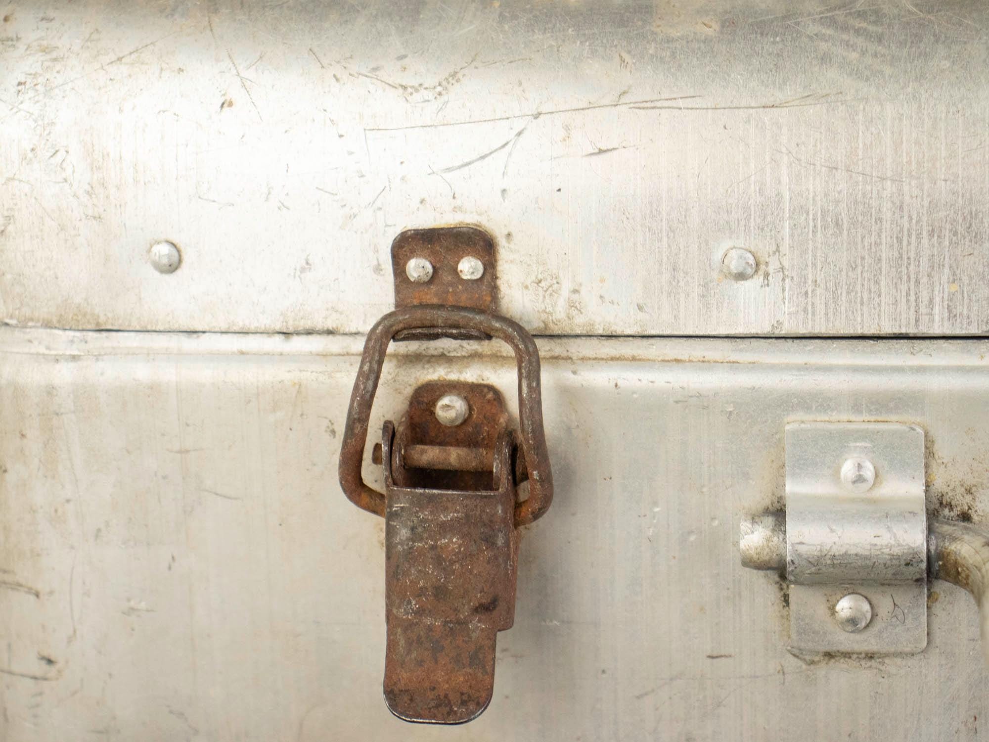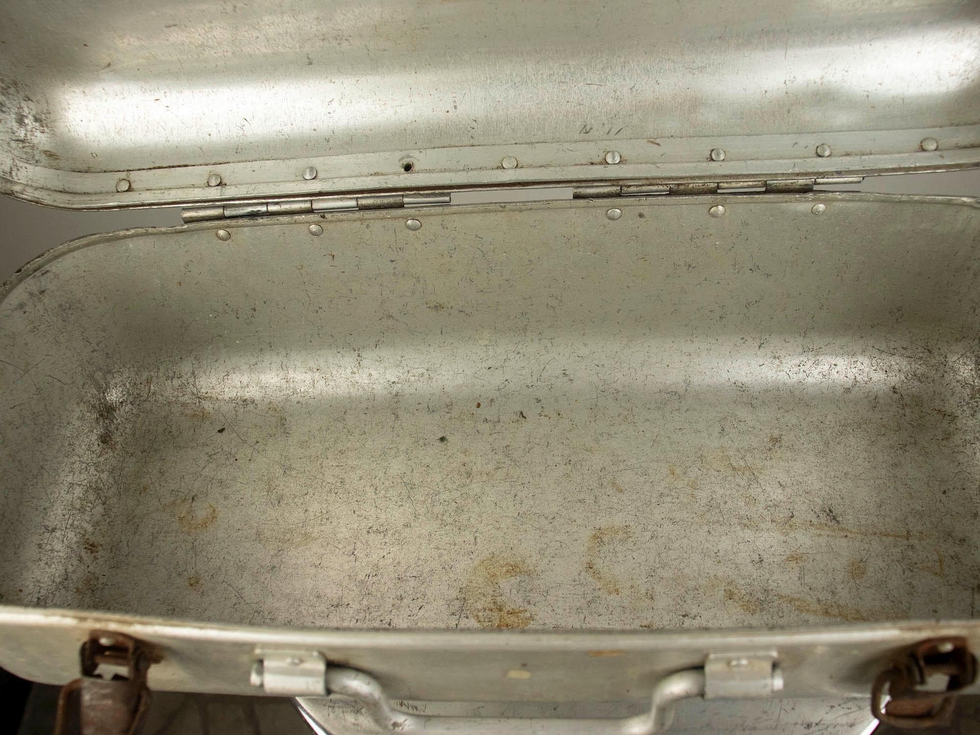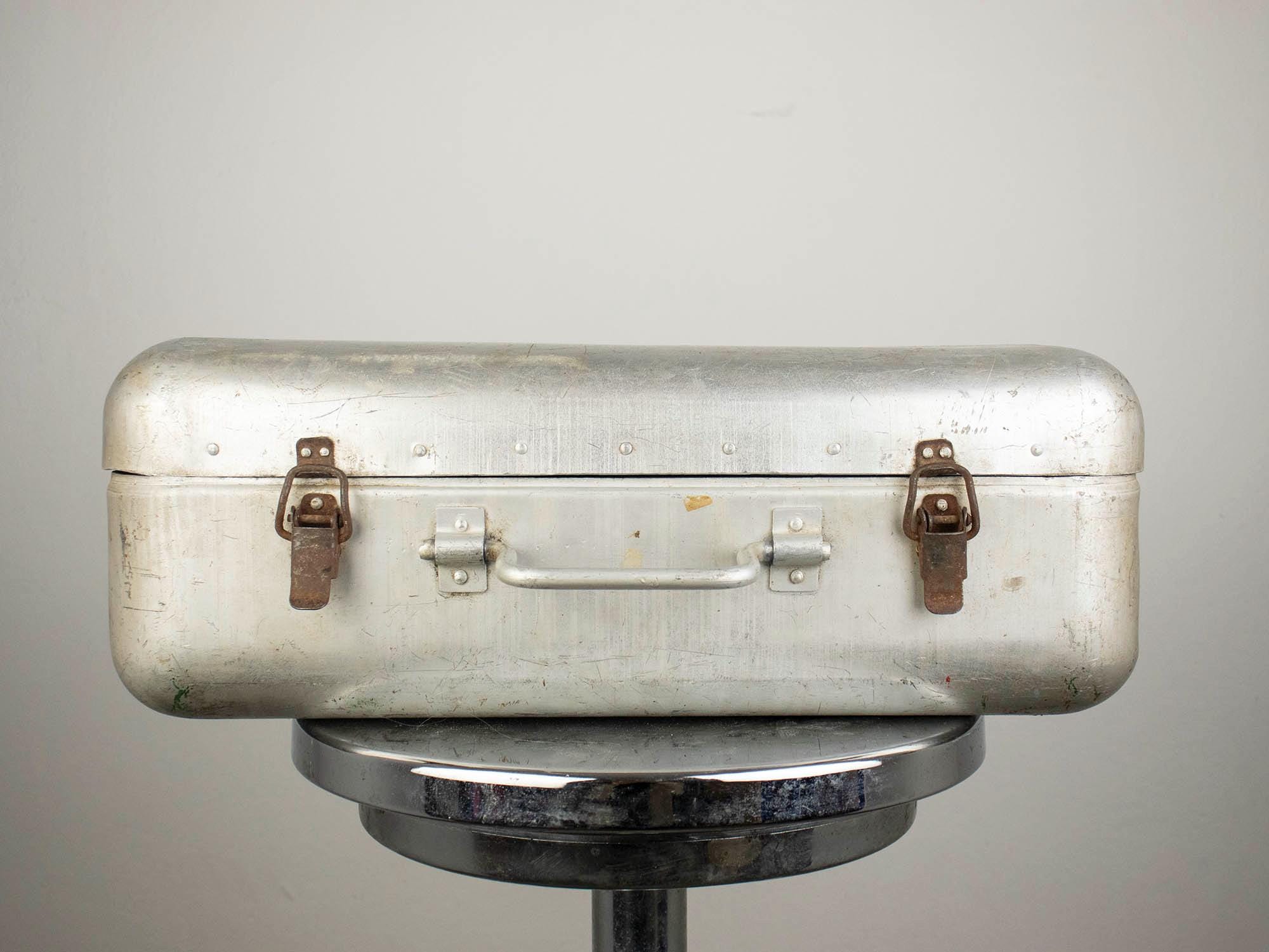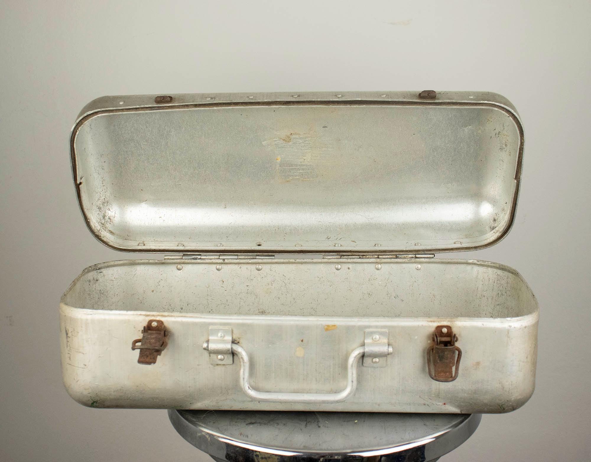 This is a great-looking vintage first-aid metal box used in army trucks. It is in good condition with visible traces of usage. It is a classical aluminum box with a red cross and is a lovely vintage item that can be a lovely addition to a collection, a beautiful vintage decoration item, or even can be used again as a first aid box. The box is a genuine piece with great quality and is made to last.