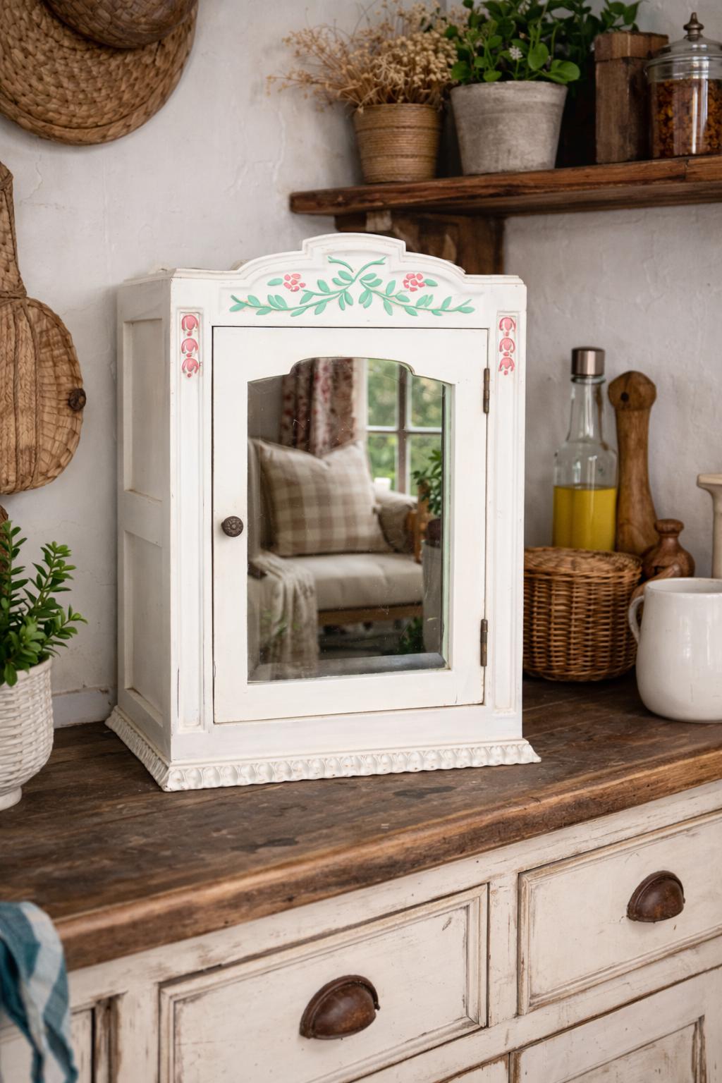 A perfect blend of function and vintage charm, this small wall-mounted cabinet is ready to bring character to your space.