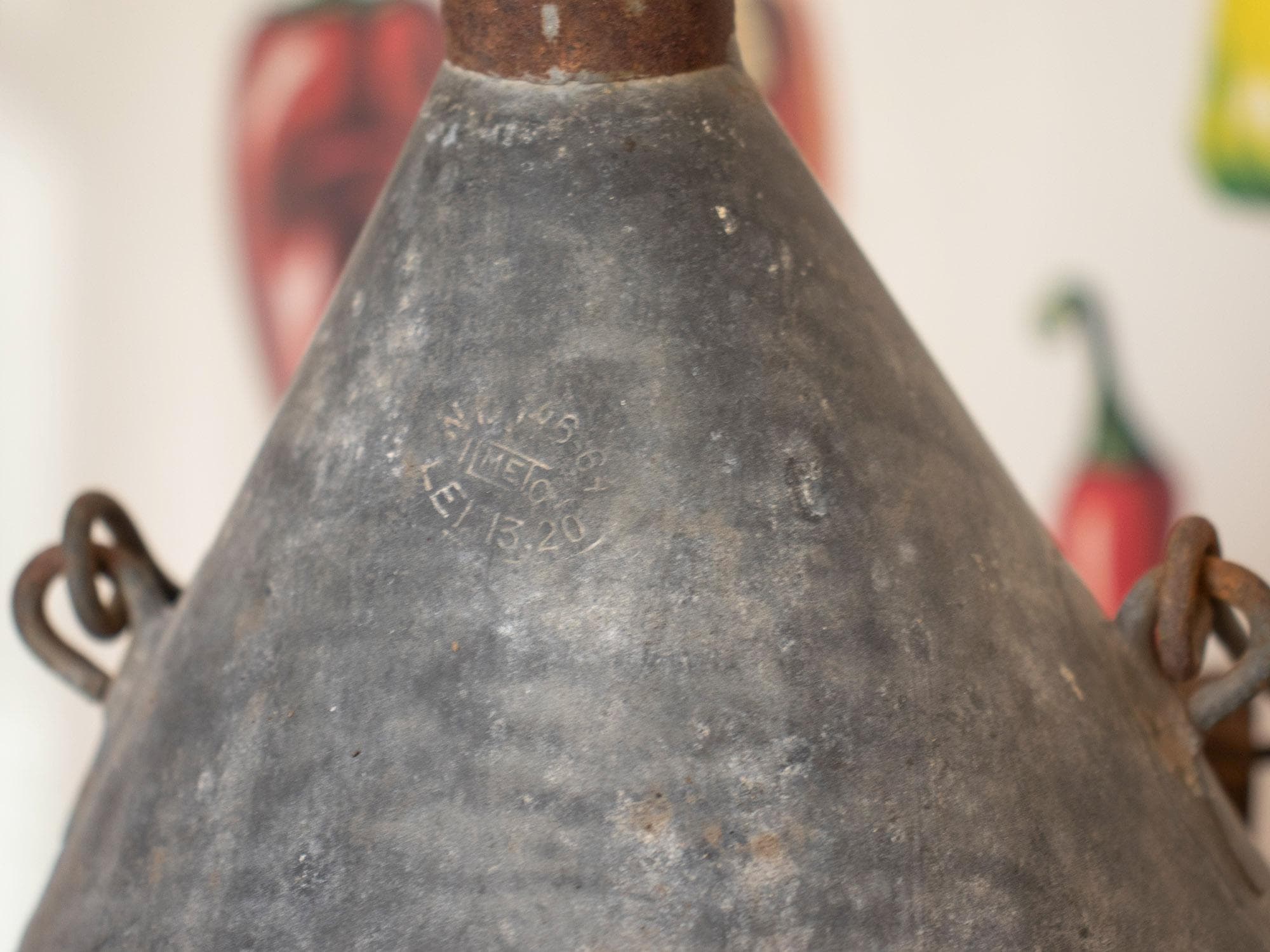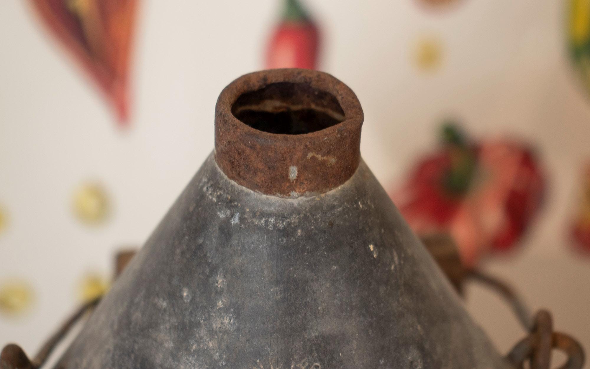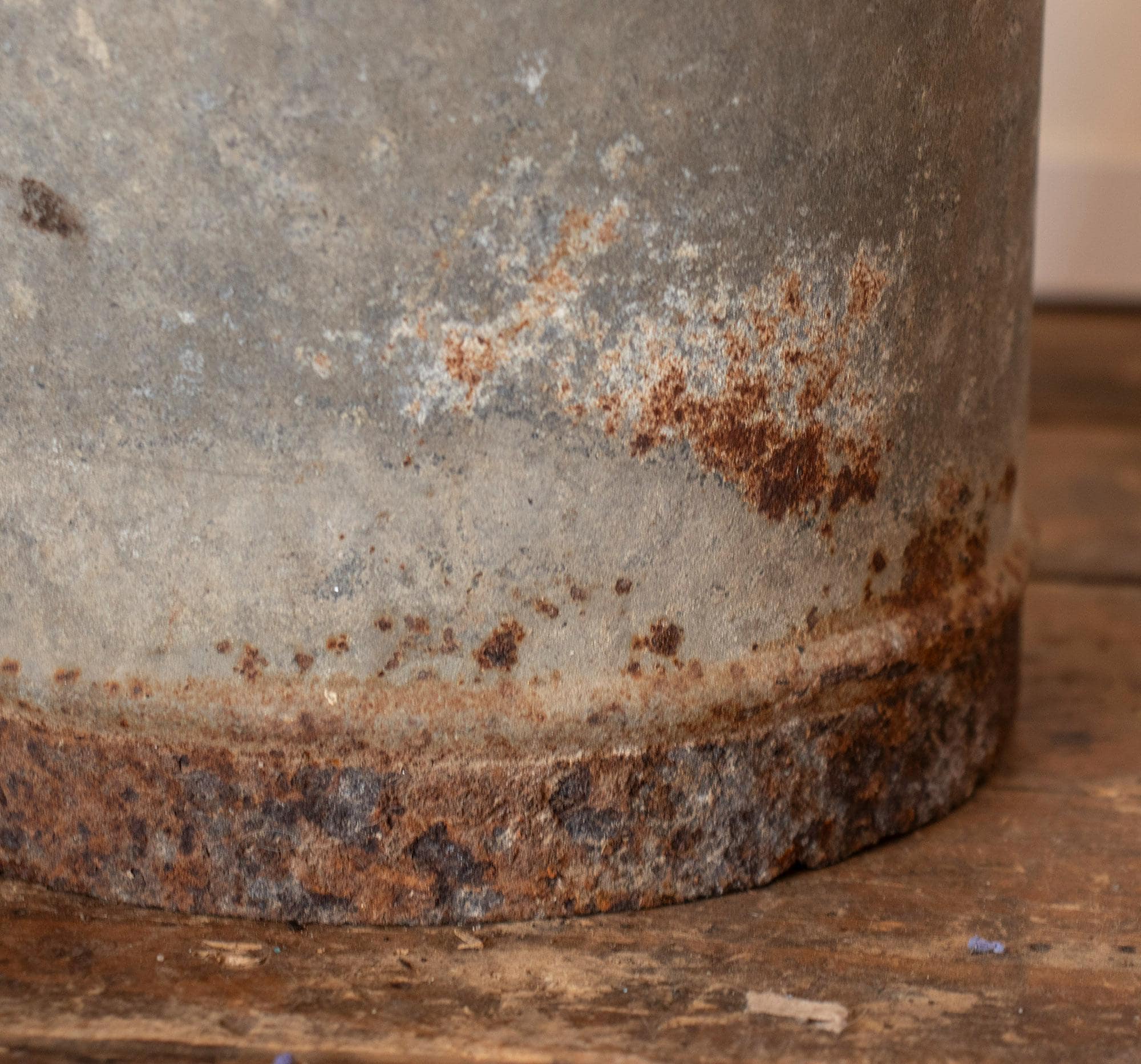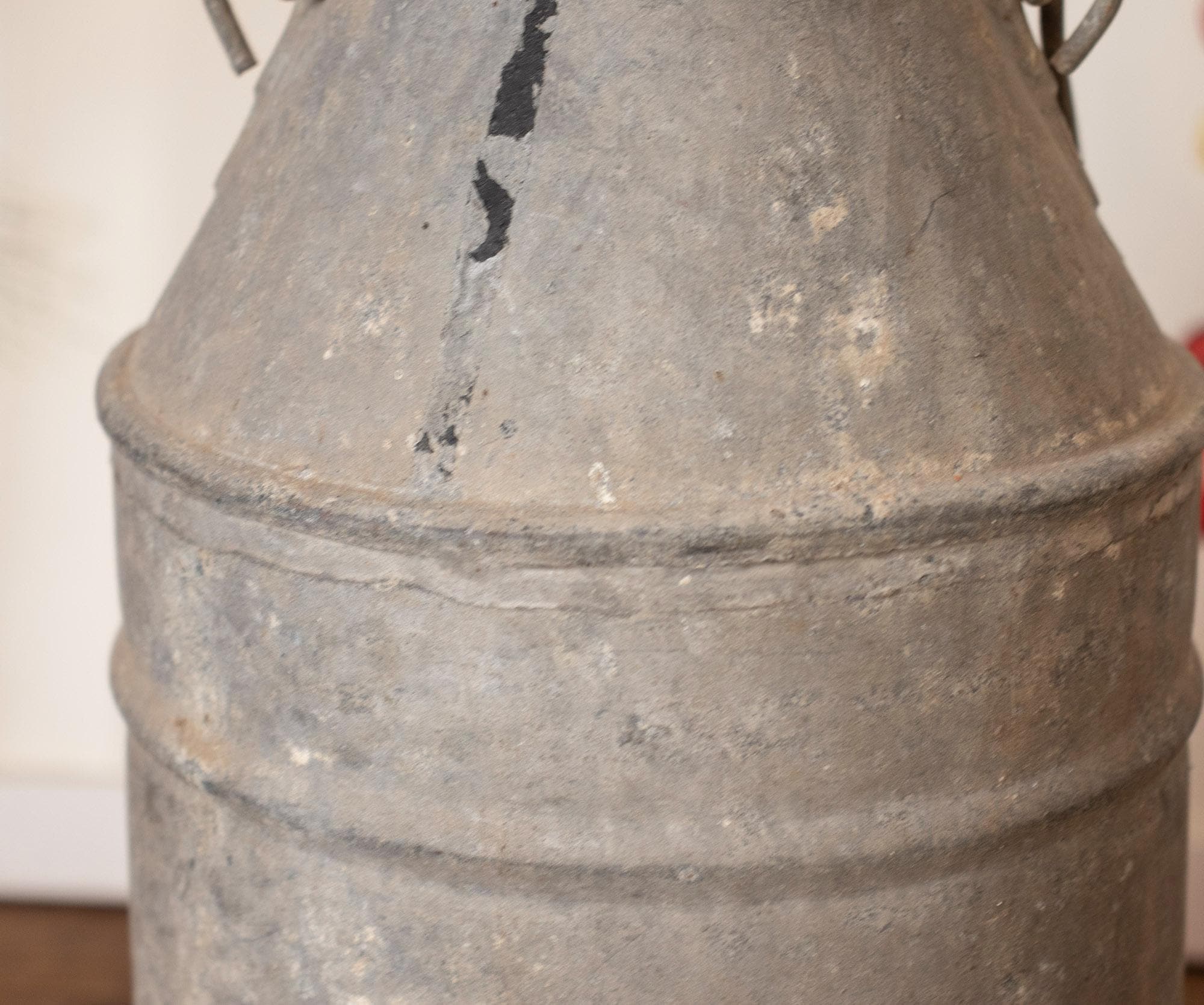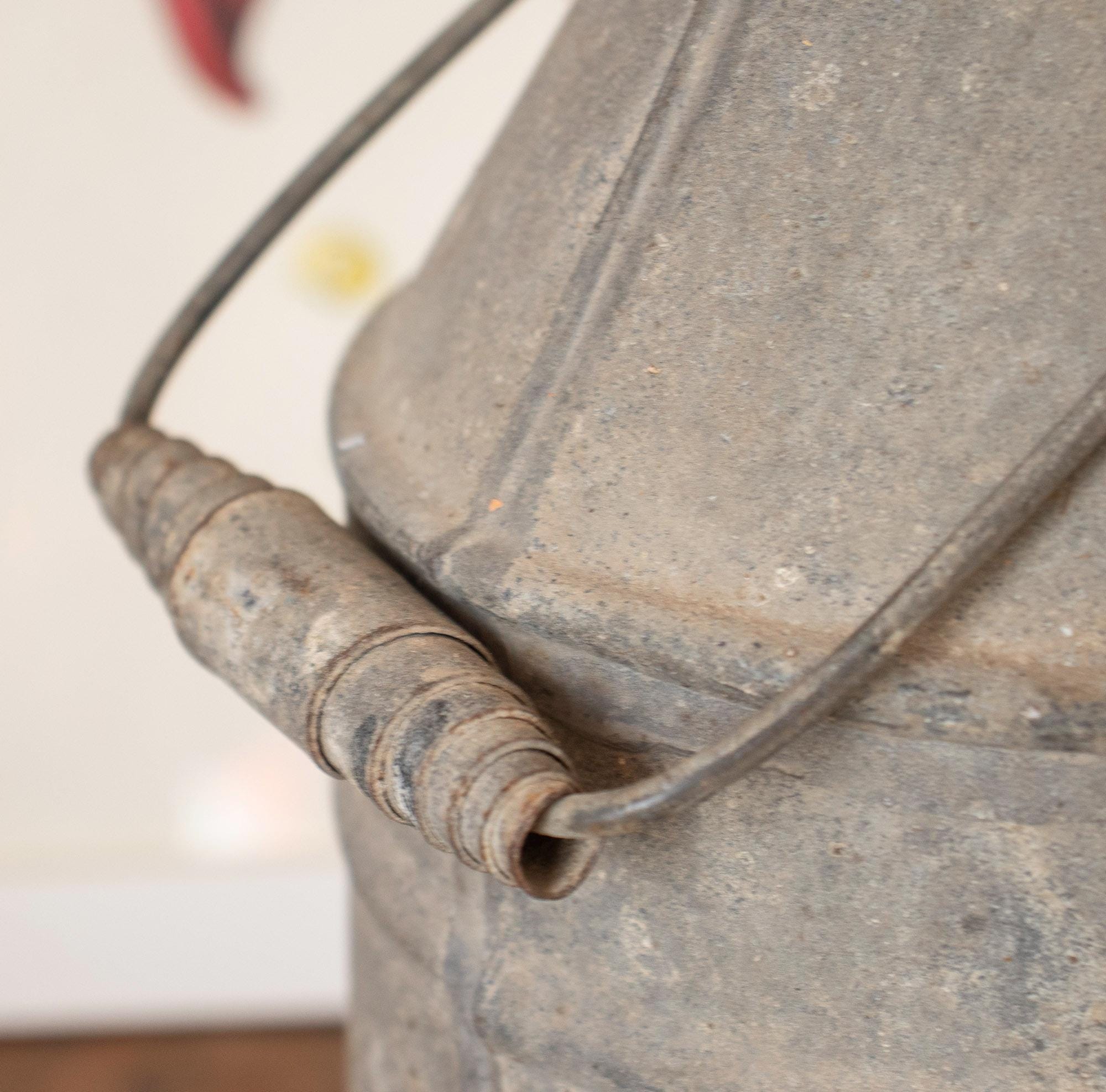 Made of galvanized metal with a handle and a conical top, each can shows its own patina and traces of use — rust, wear, and dents that only add to its character. Perfect as a vase for dried flowers, a kitchen or garden accent, or simply as a display piece with timeless industrial beauty.