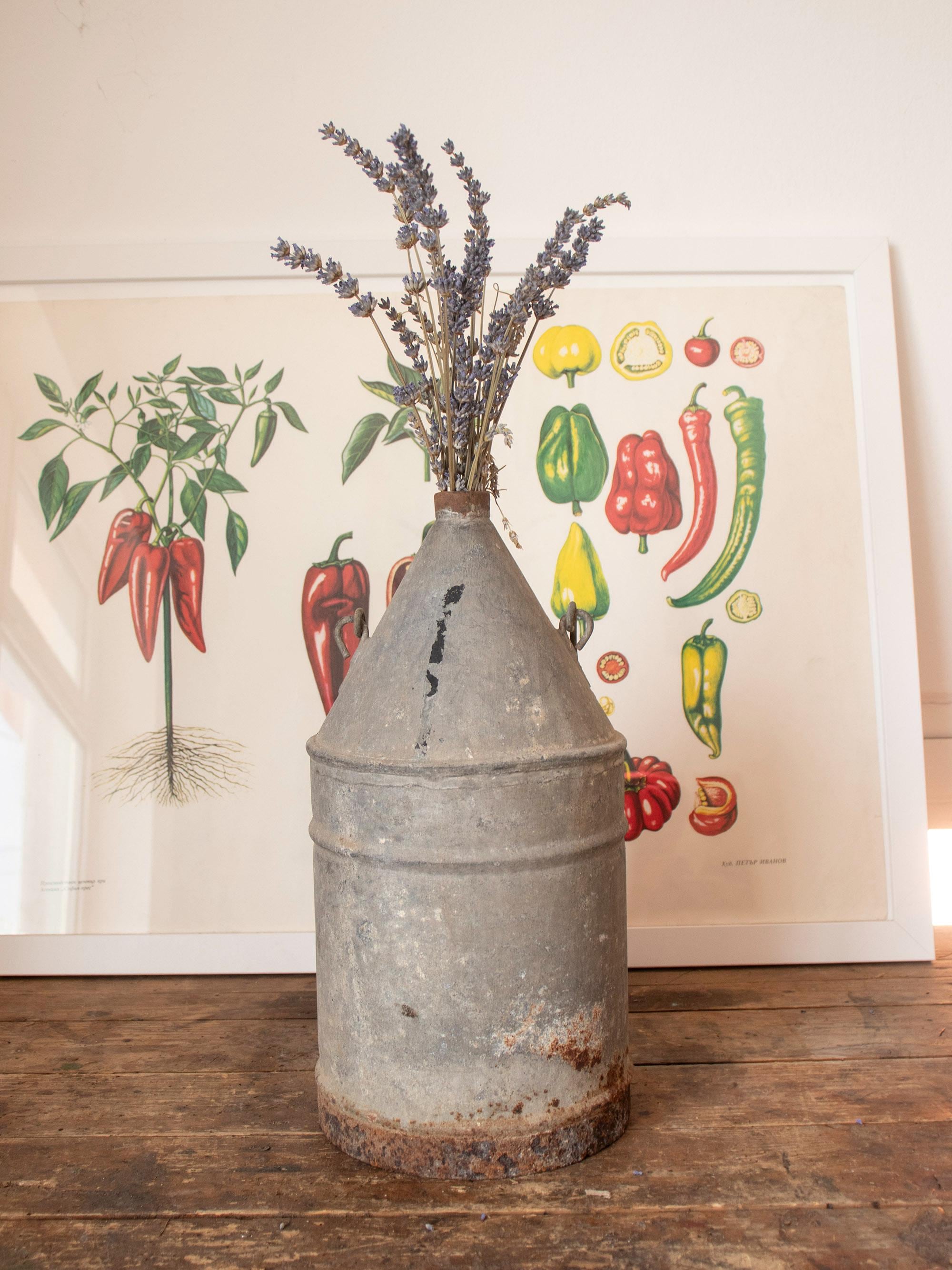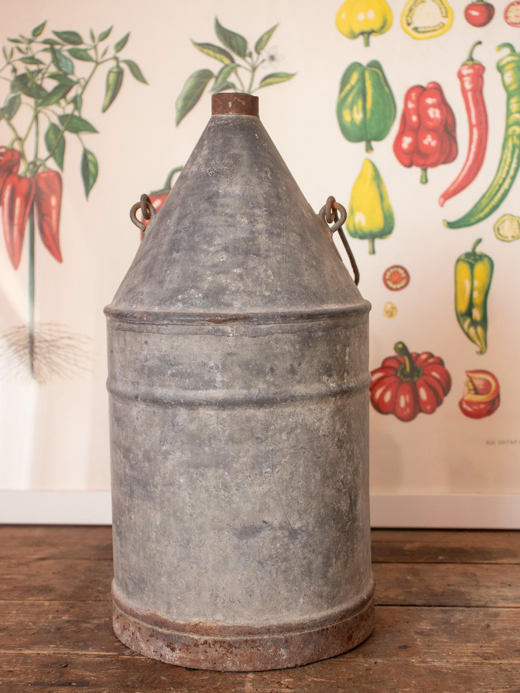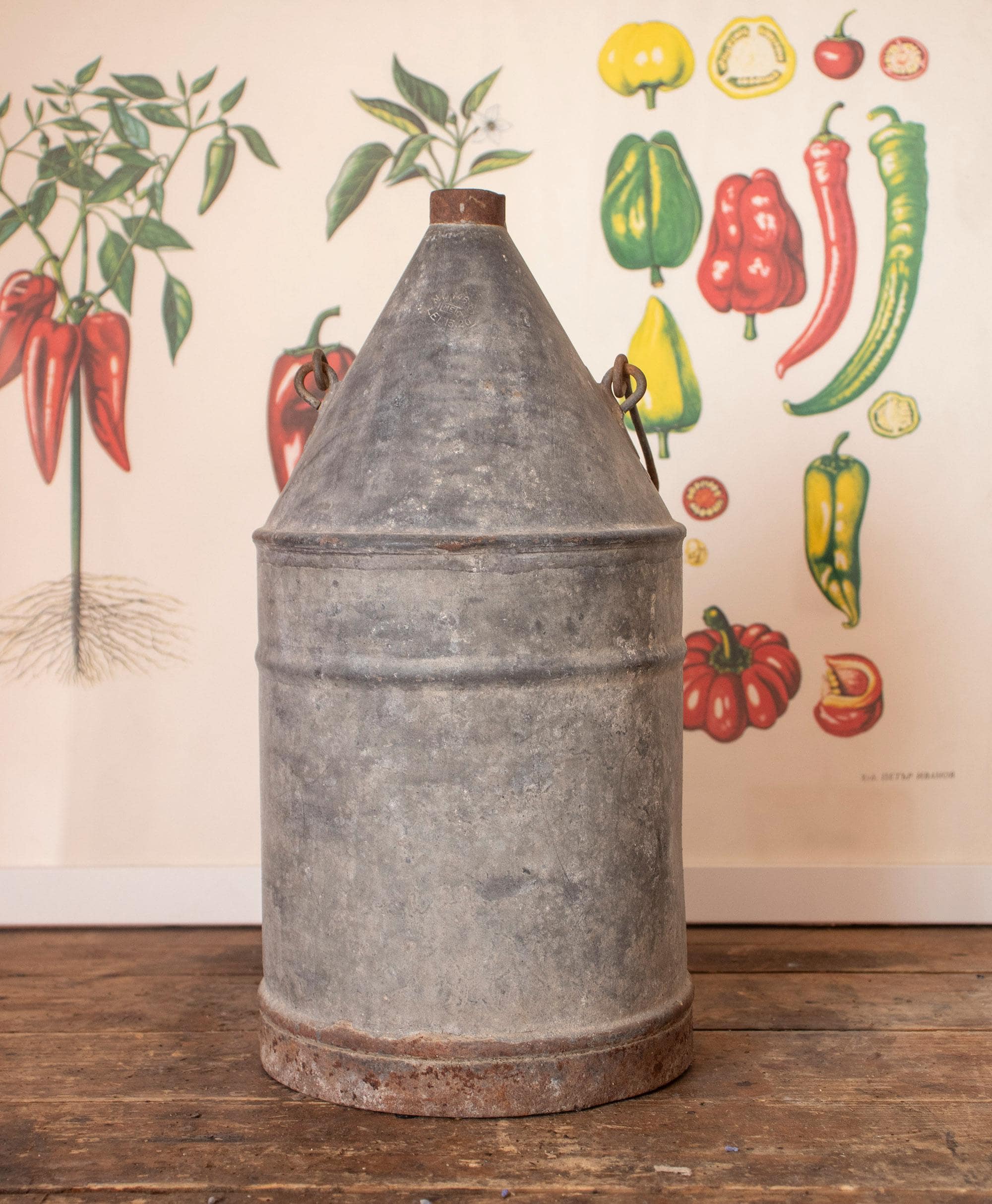 This beautiful old zinc oil cans are full of authentic rustic charm. Once used in workshops and farms across Eastern Europe, they now make a striking decorative accent with an industrial and farmhouse feel.