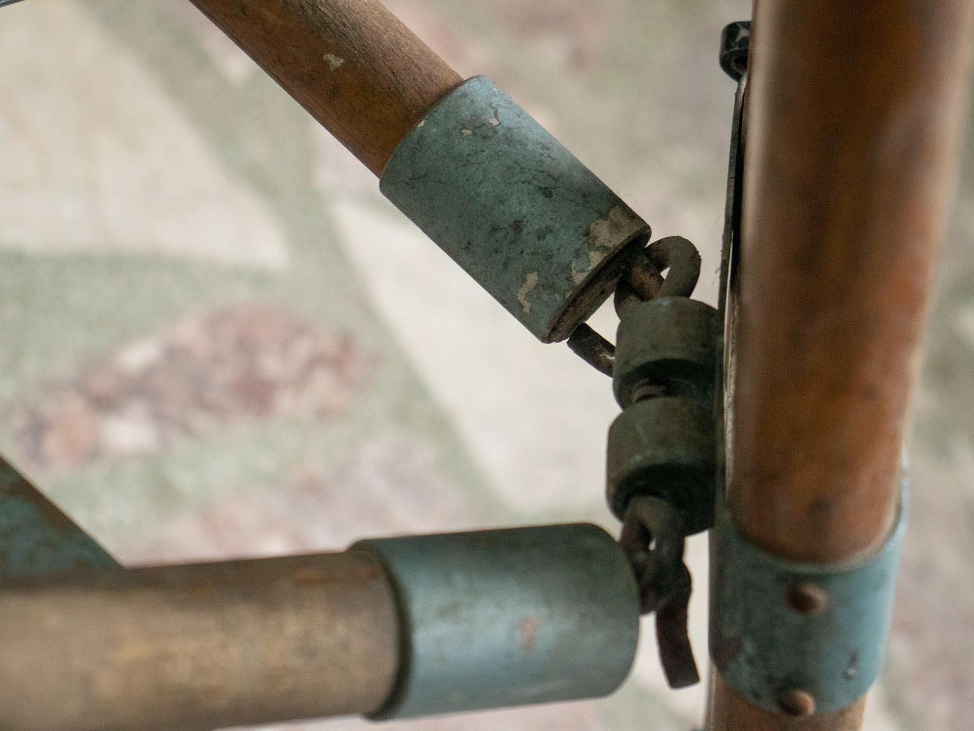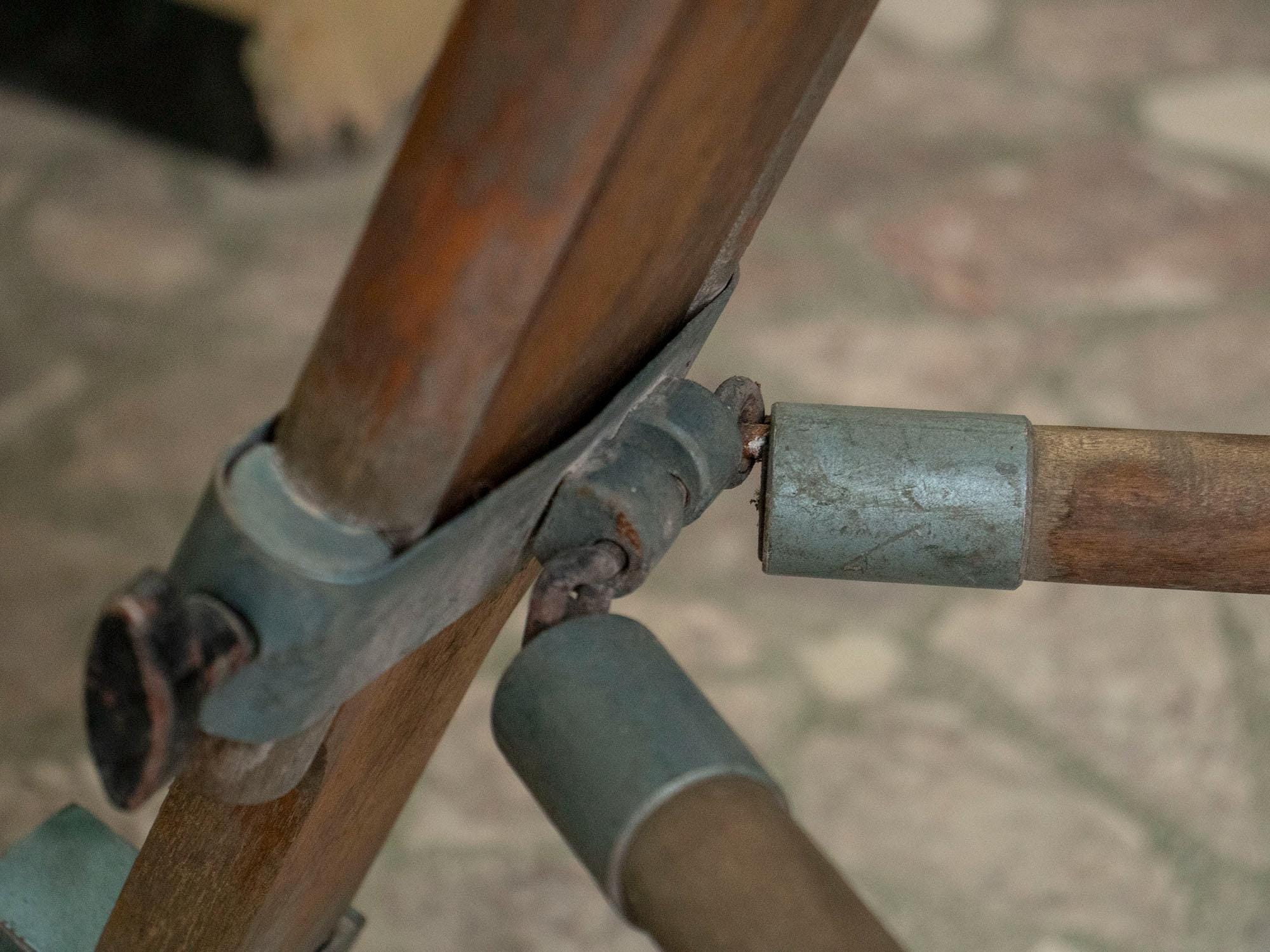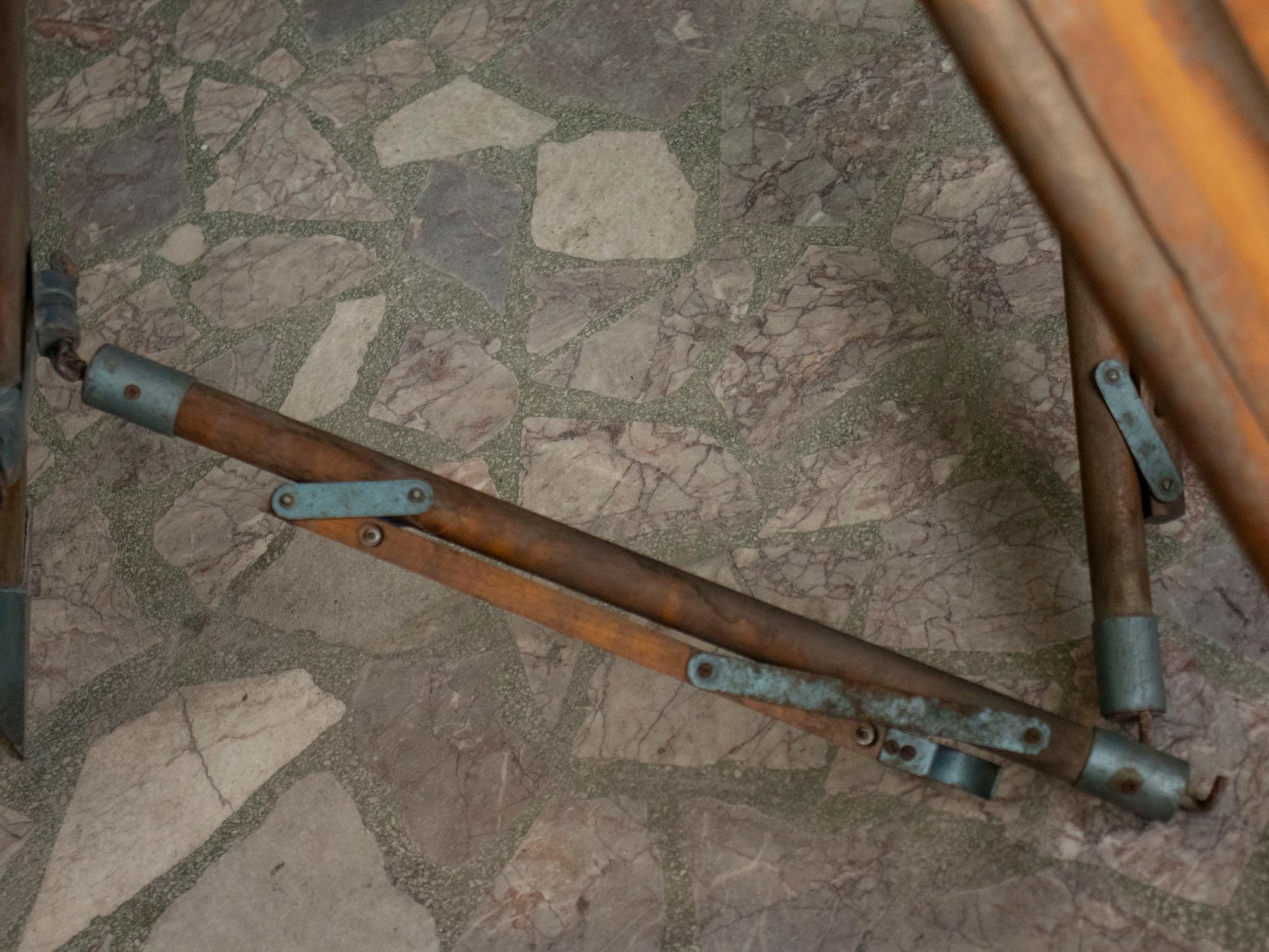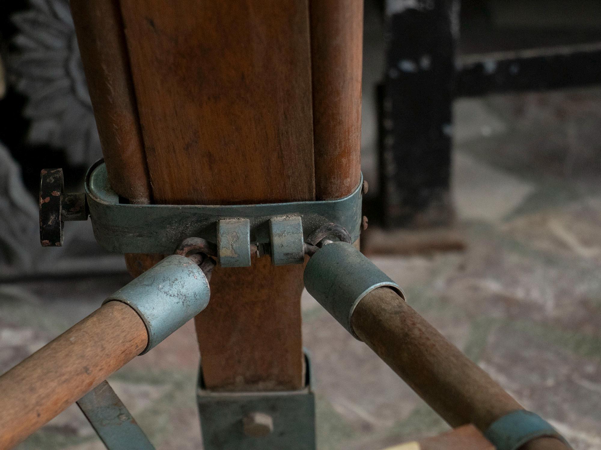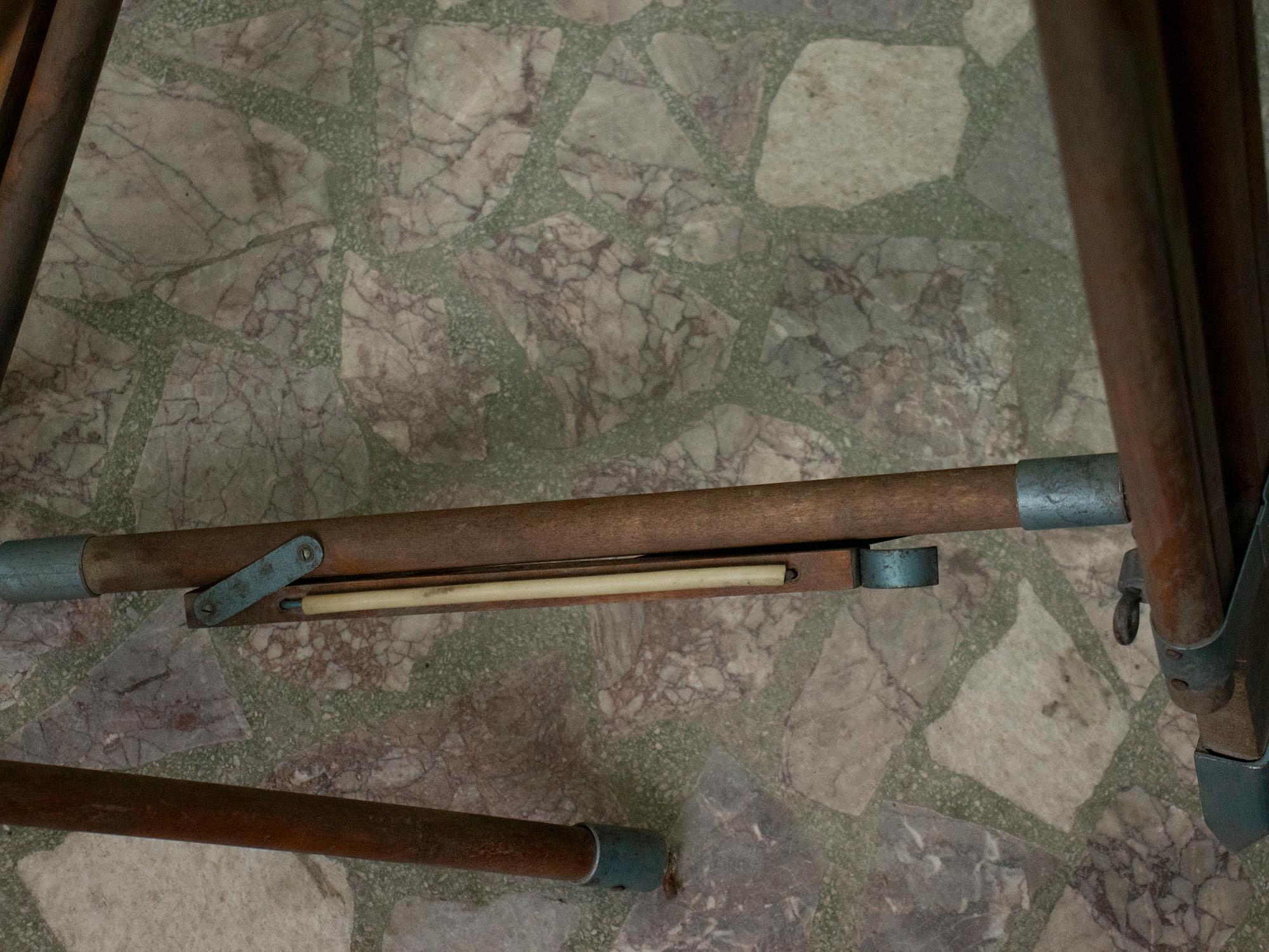 Good vintage condition with authentic wear and patina consistent with age and use. All metal joints and clamps are intact and functional. A few scratches and signs of aging add to its authentic industrial charm.