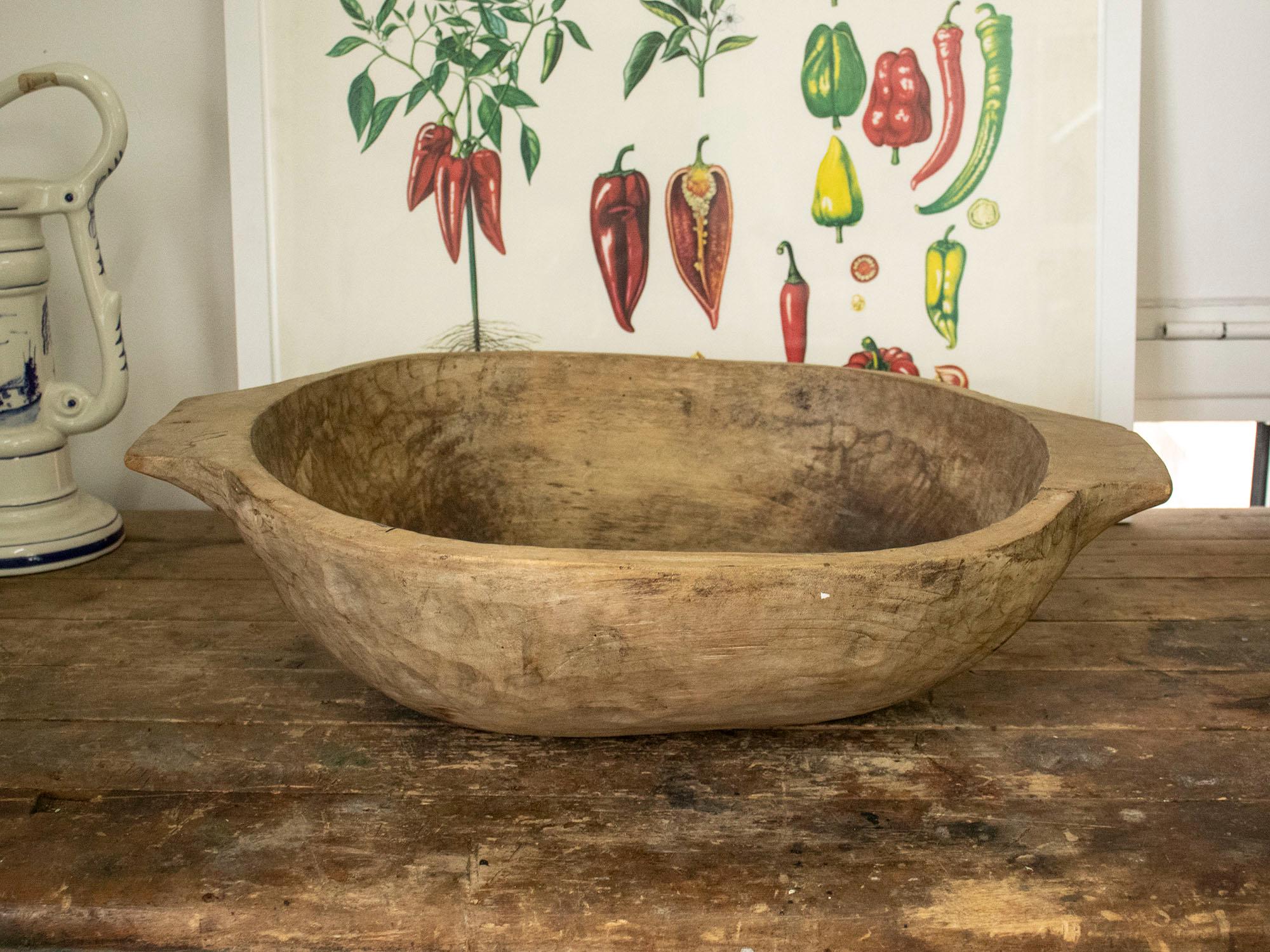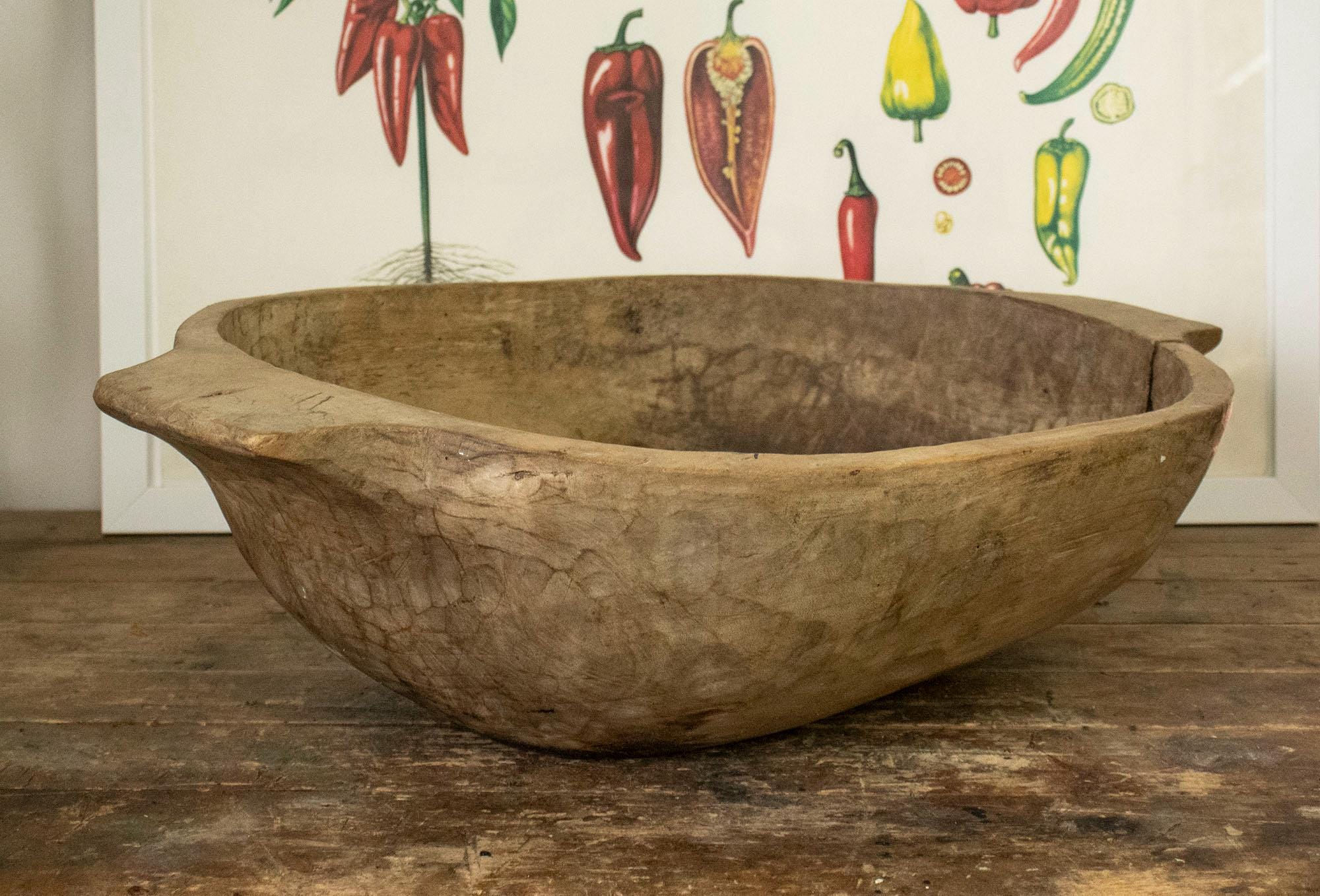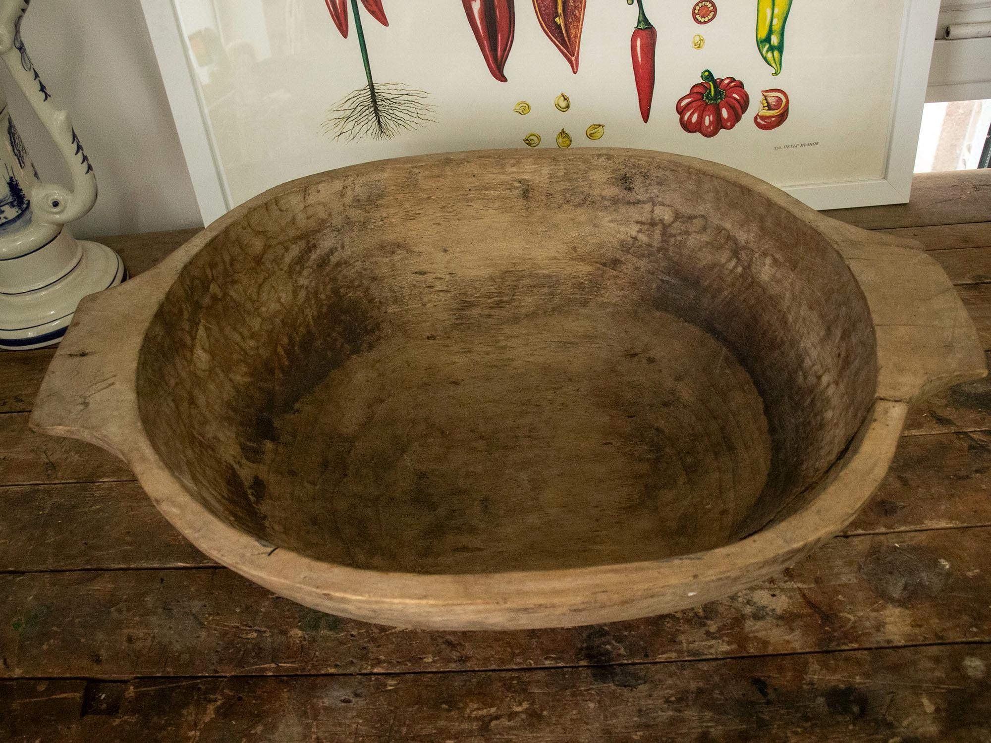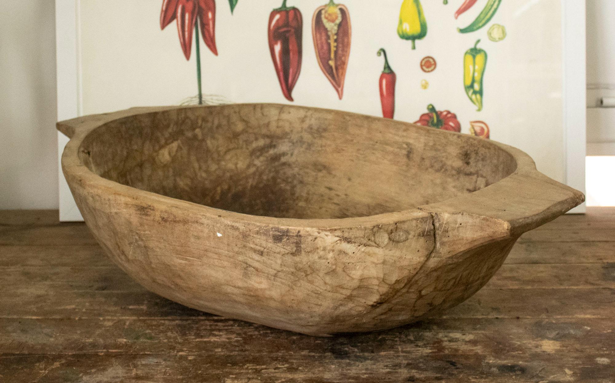 A beautiful vintage Hungarian dough bowl, hand-carved from a single piece of solid wood.