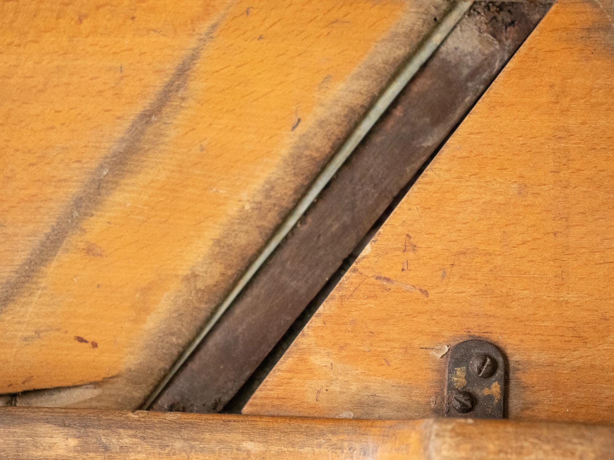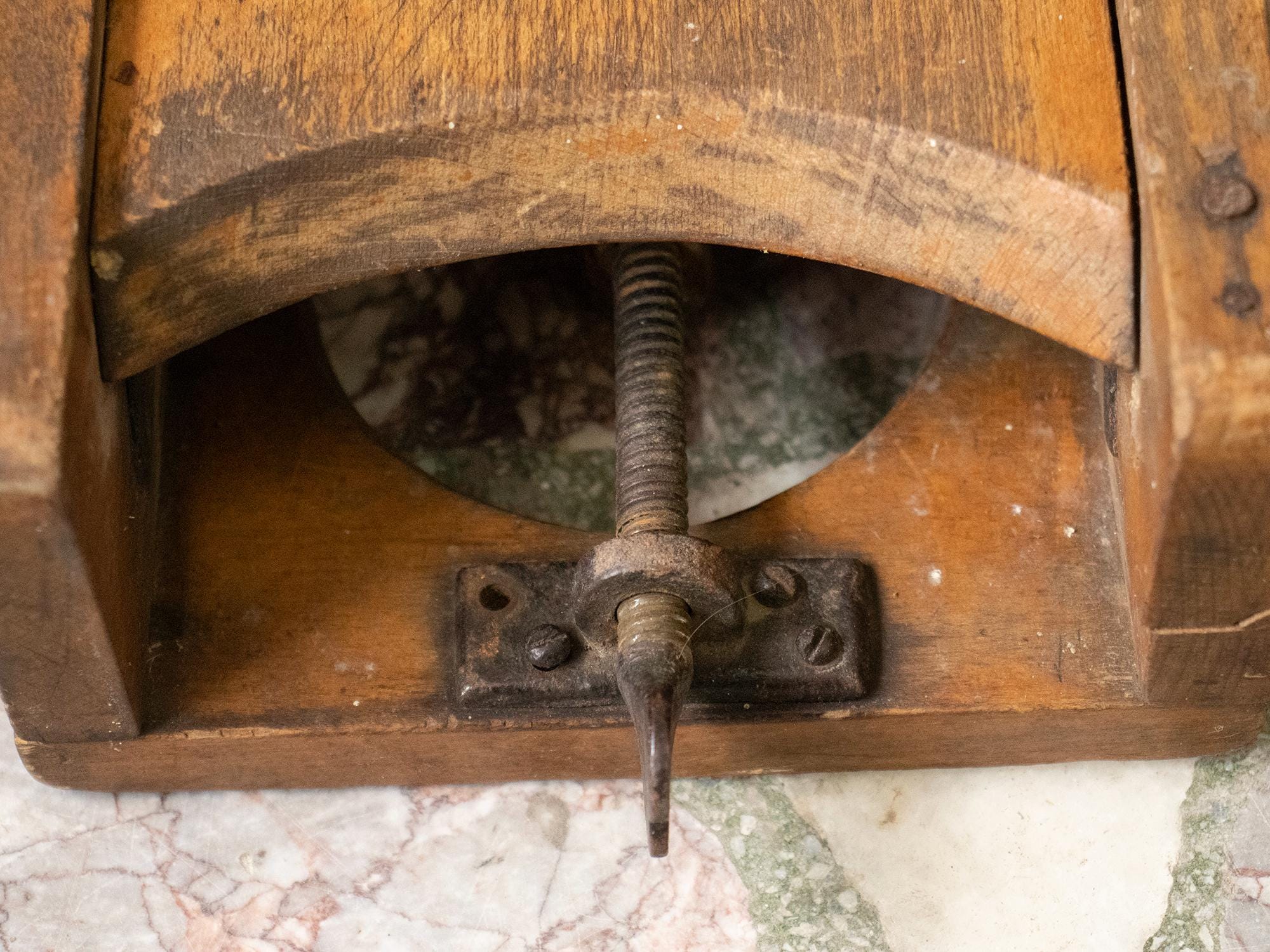 It has a beautiful rustic look with an aged wooden patina, visible tool marks, and iron elements showing their original wear. A great example of old handmade utility design — simple, functional, and full of character.