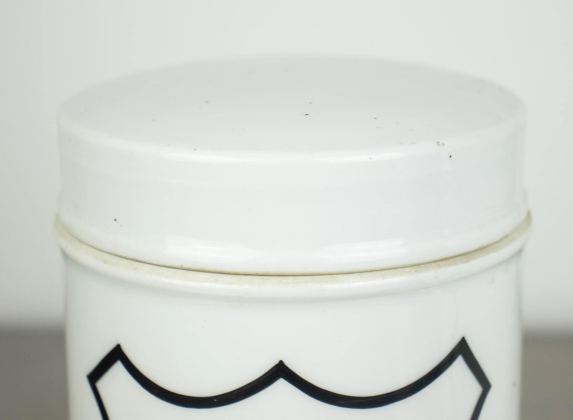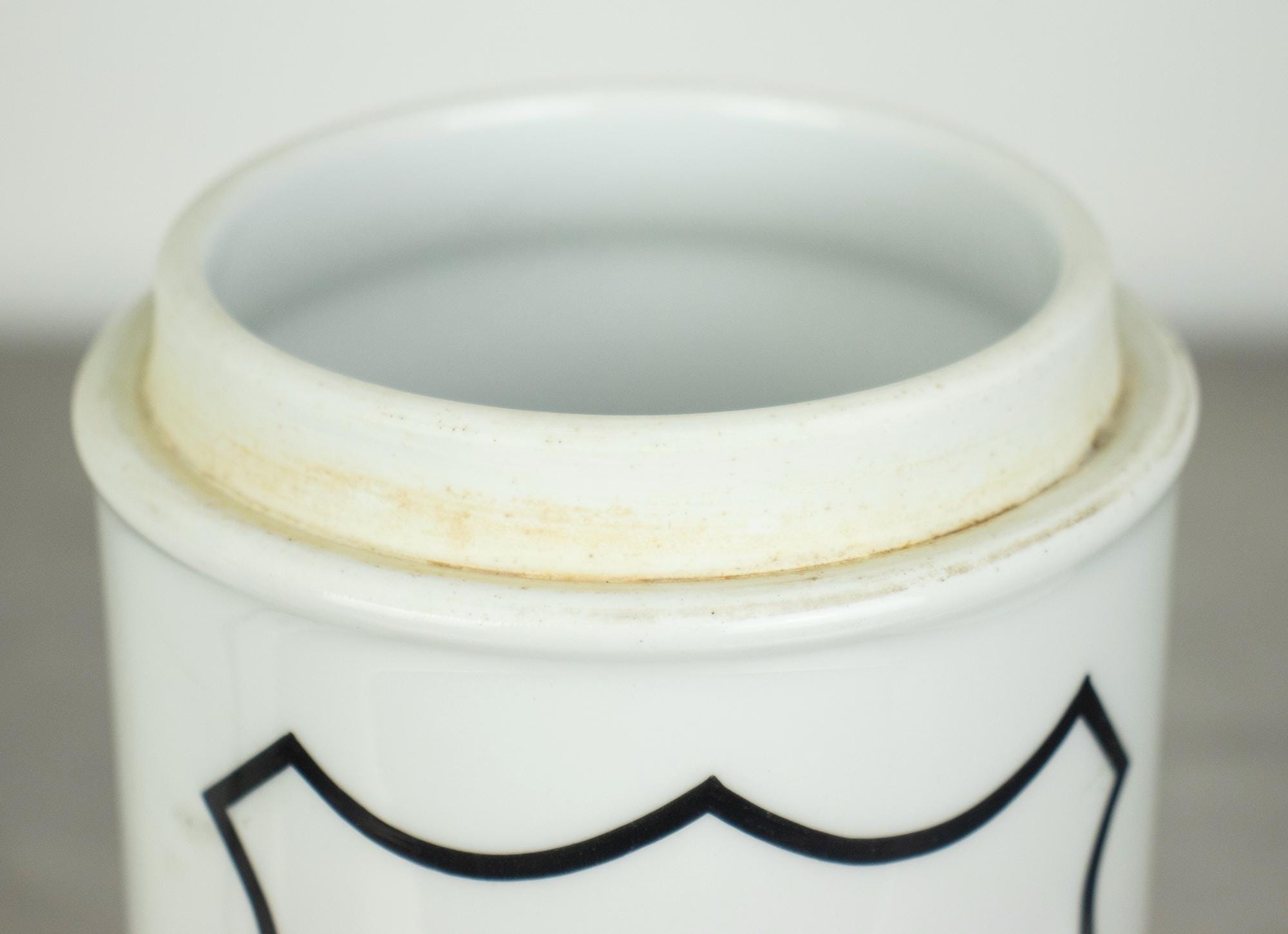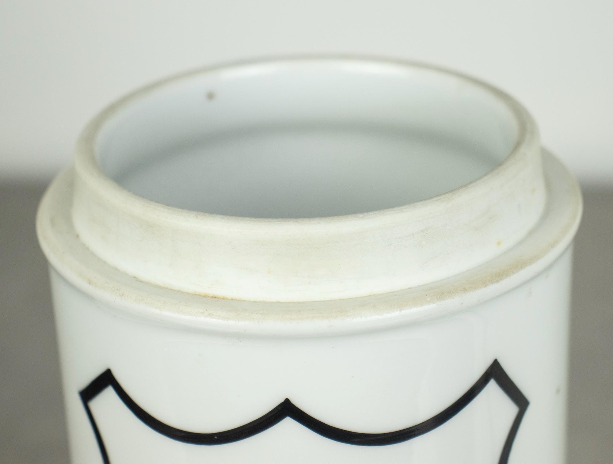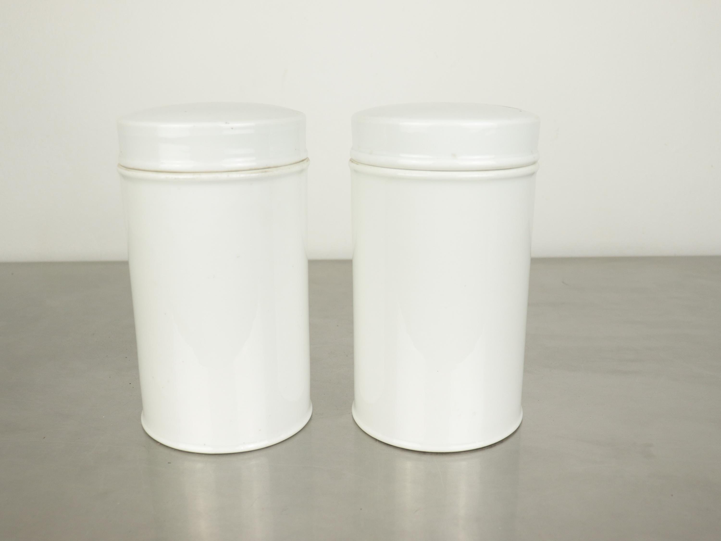 The jars are 18 cm high and 10 cm in diameter, made from enamel-coated metal, each with a fitted lid. Their clean white surface and bold black lettering give them a timeless, minimal, laboratory feel—perfect for display in modern interiors, bathroom styling, medical collections, or as decorative storage.
