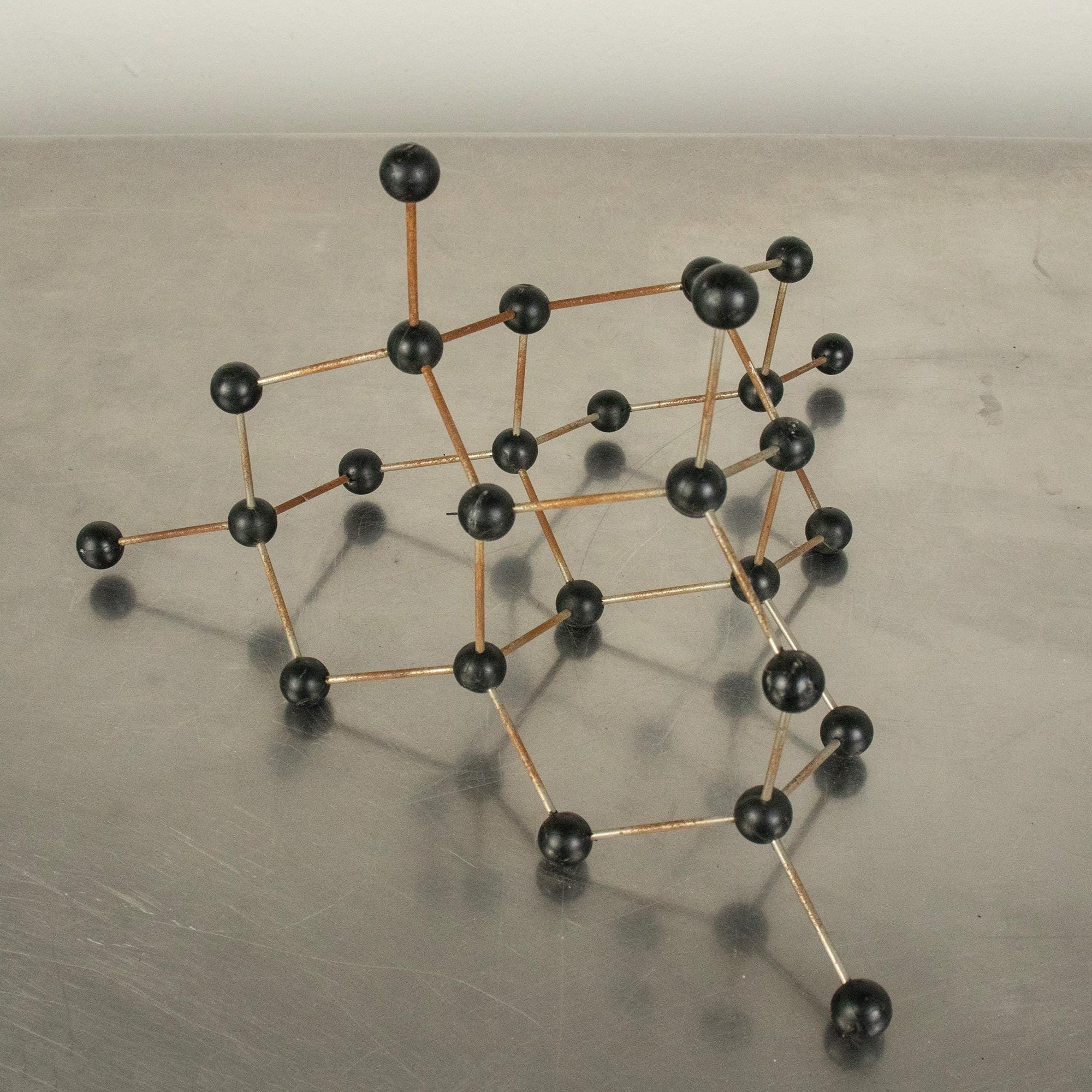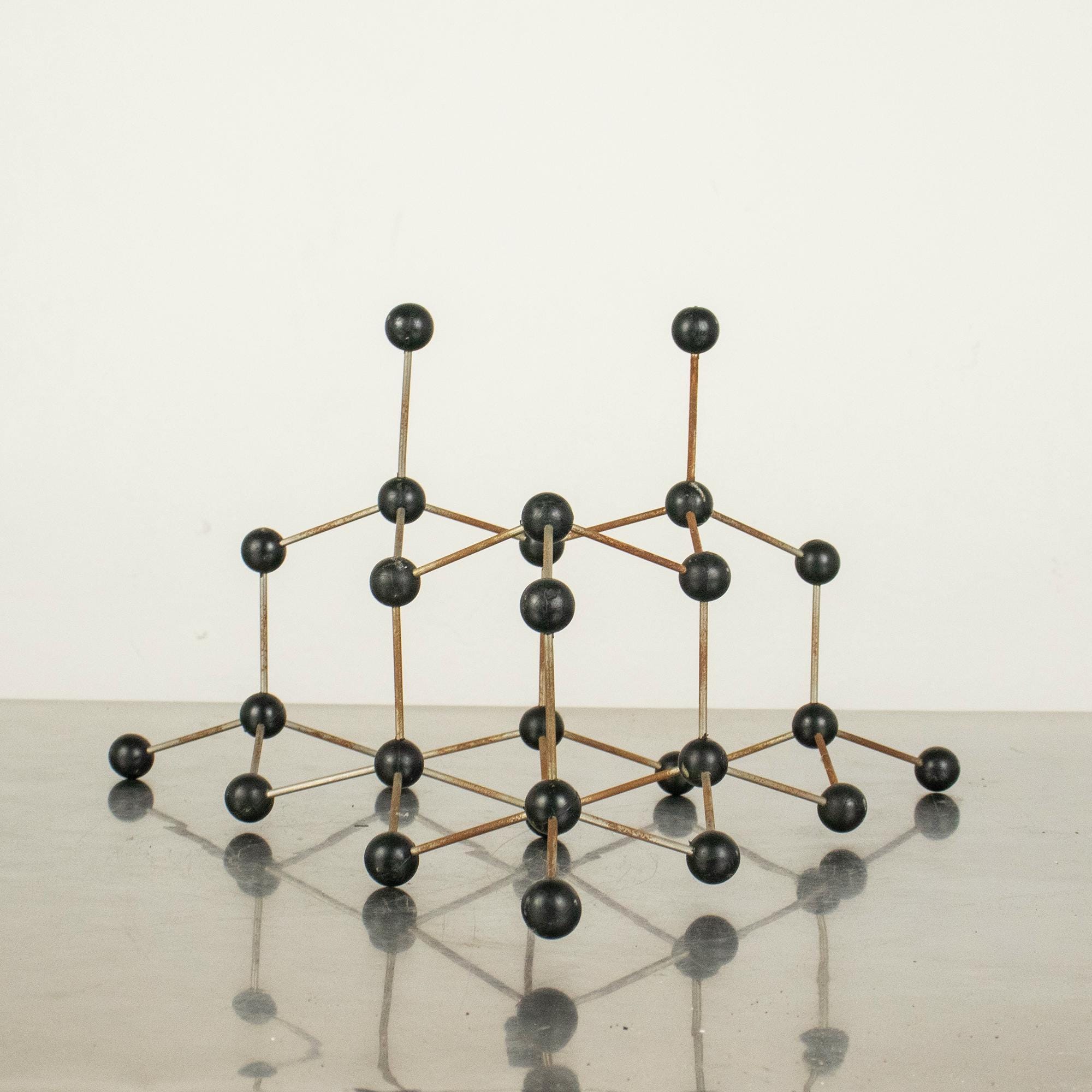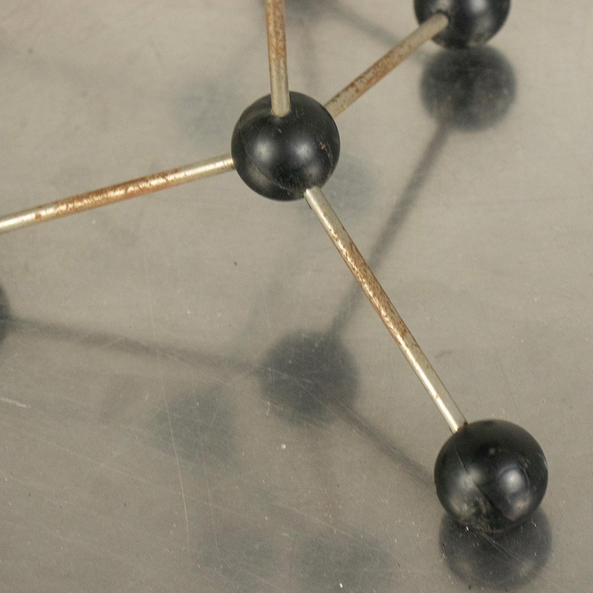 Made of metal rods and black spherical nodes, the model has a strong scientific and minimalist look. Today it works beautifully as a decorative object for a modern interior, office, studio, or science-inspired space.