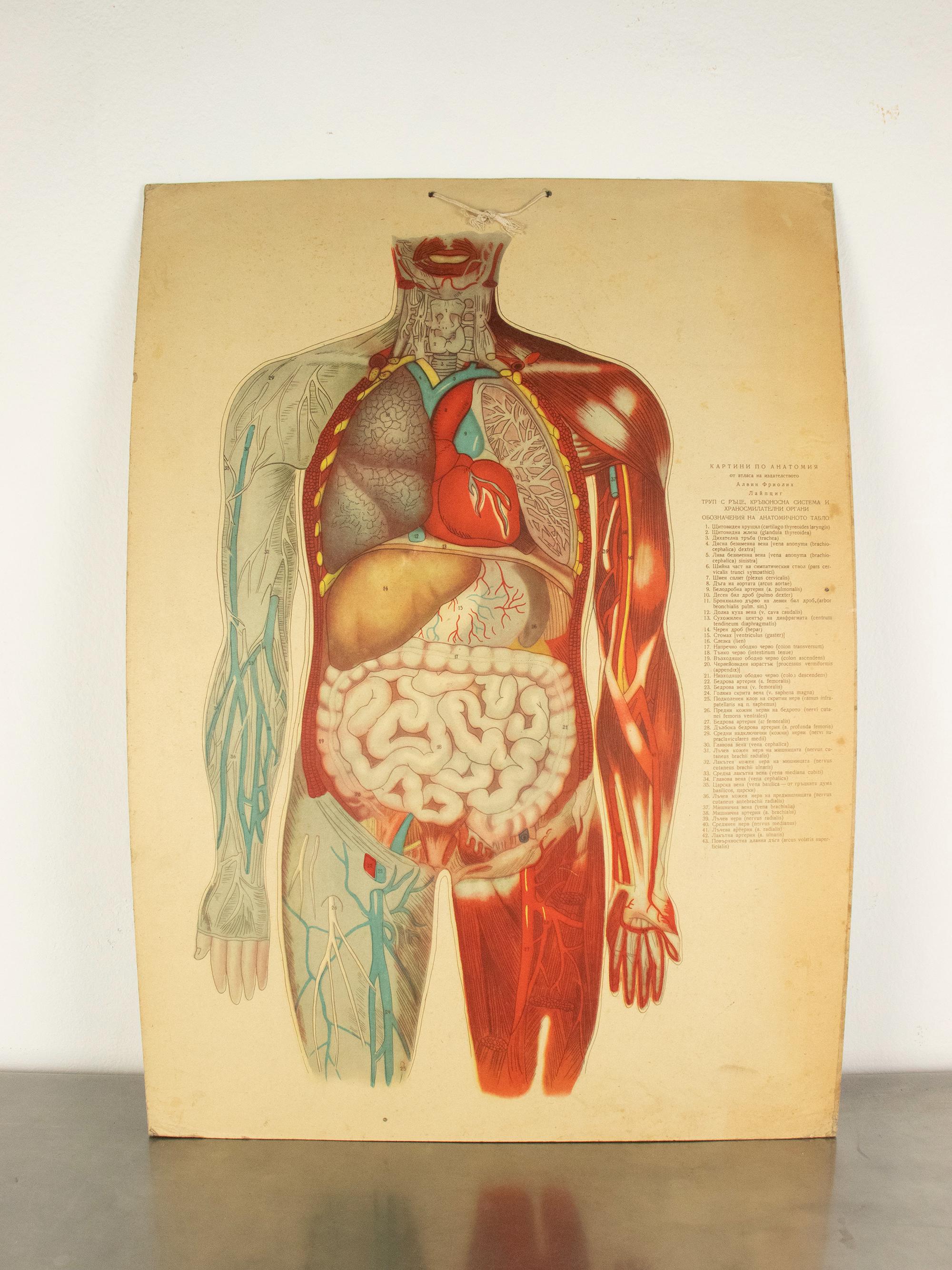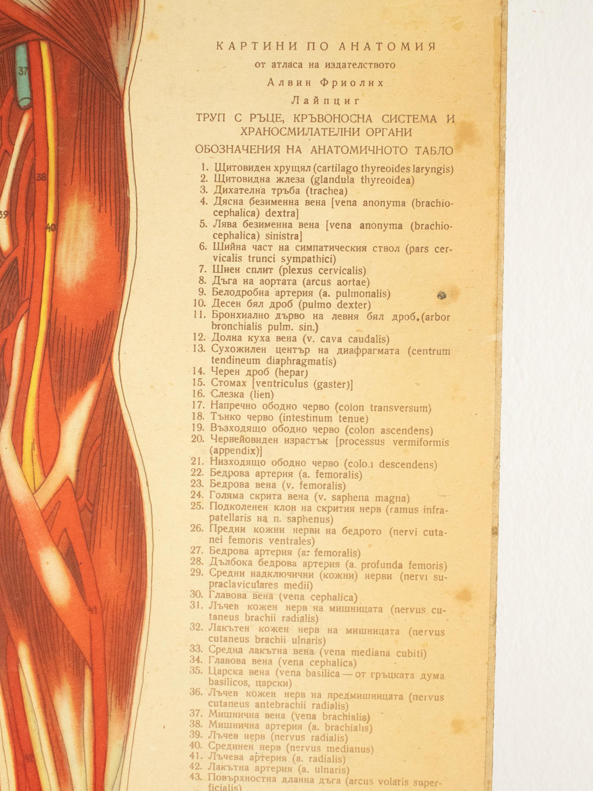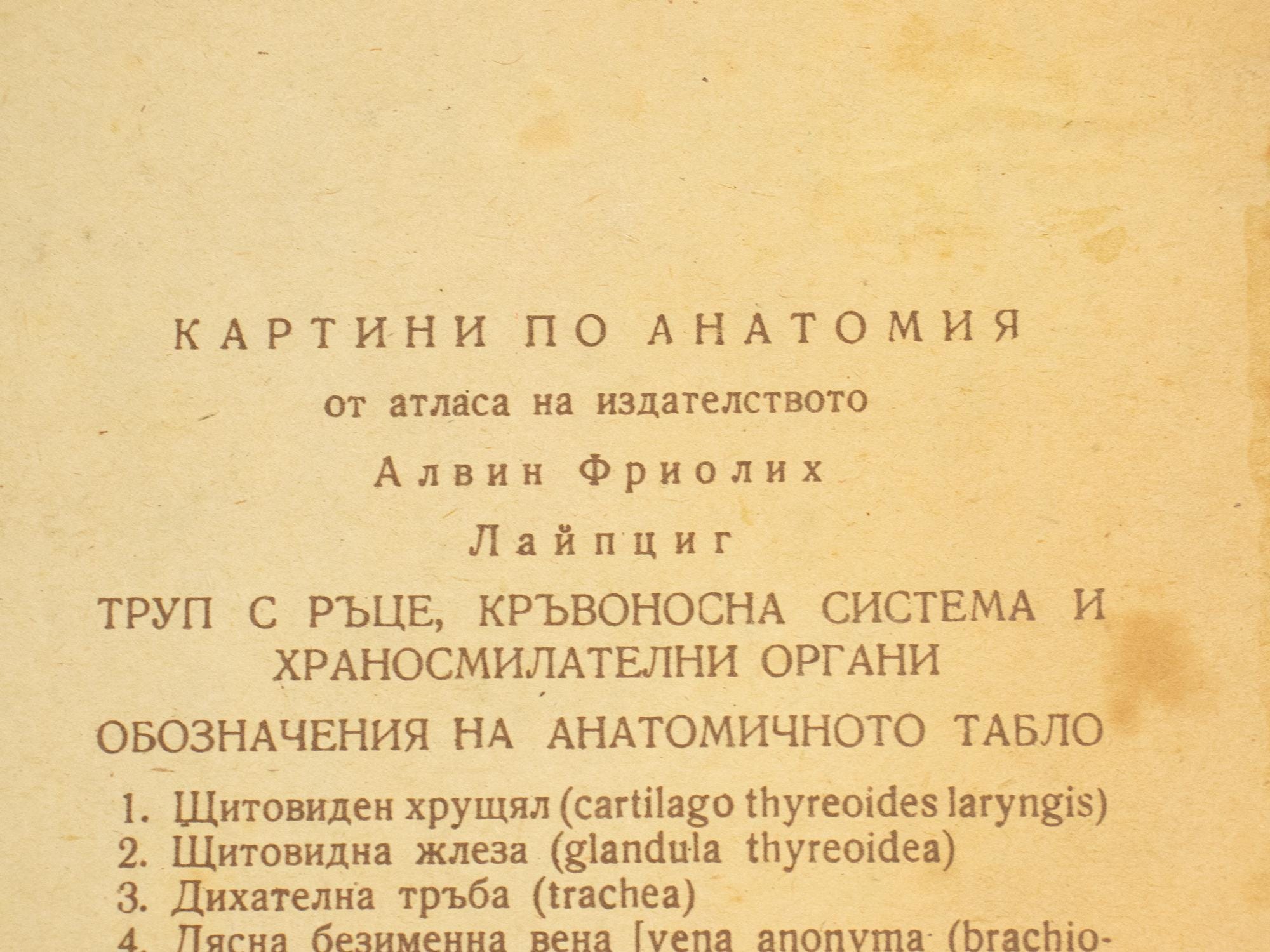 Printed after an atlas by the Leipzig publisher Alwin Friolich, the chart combines German academic influence with Bulgarian educational production — a wonderful intersection valued by collectors of medical and scientific materials.