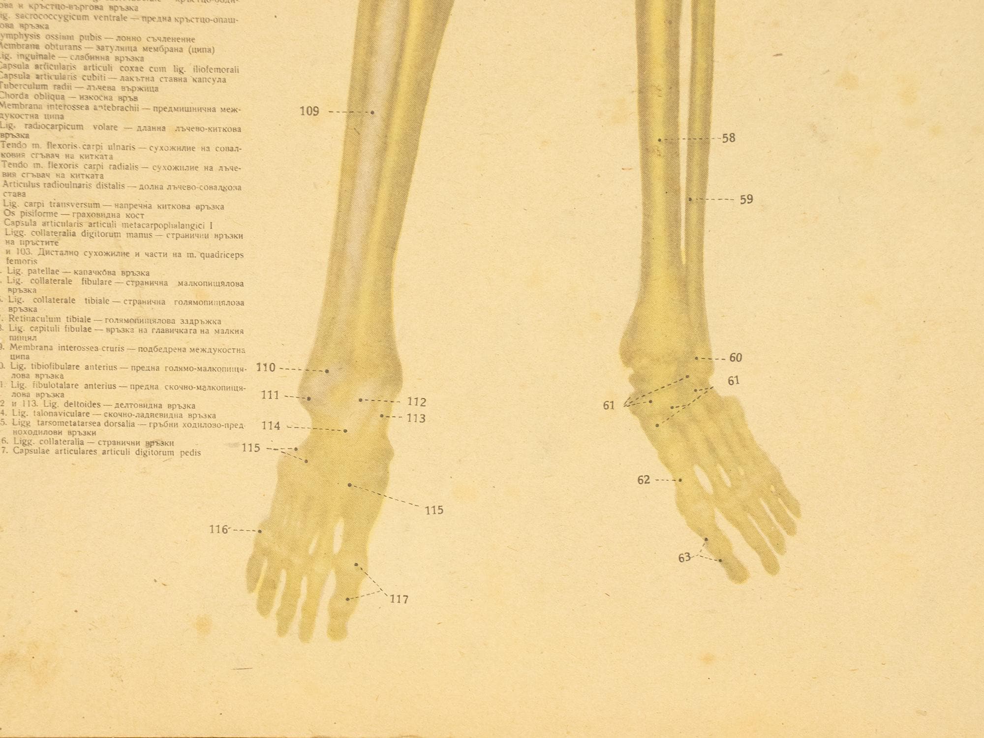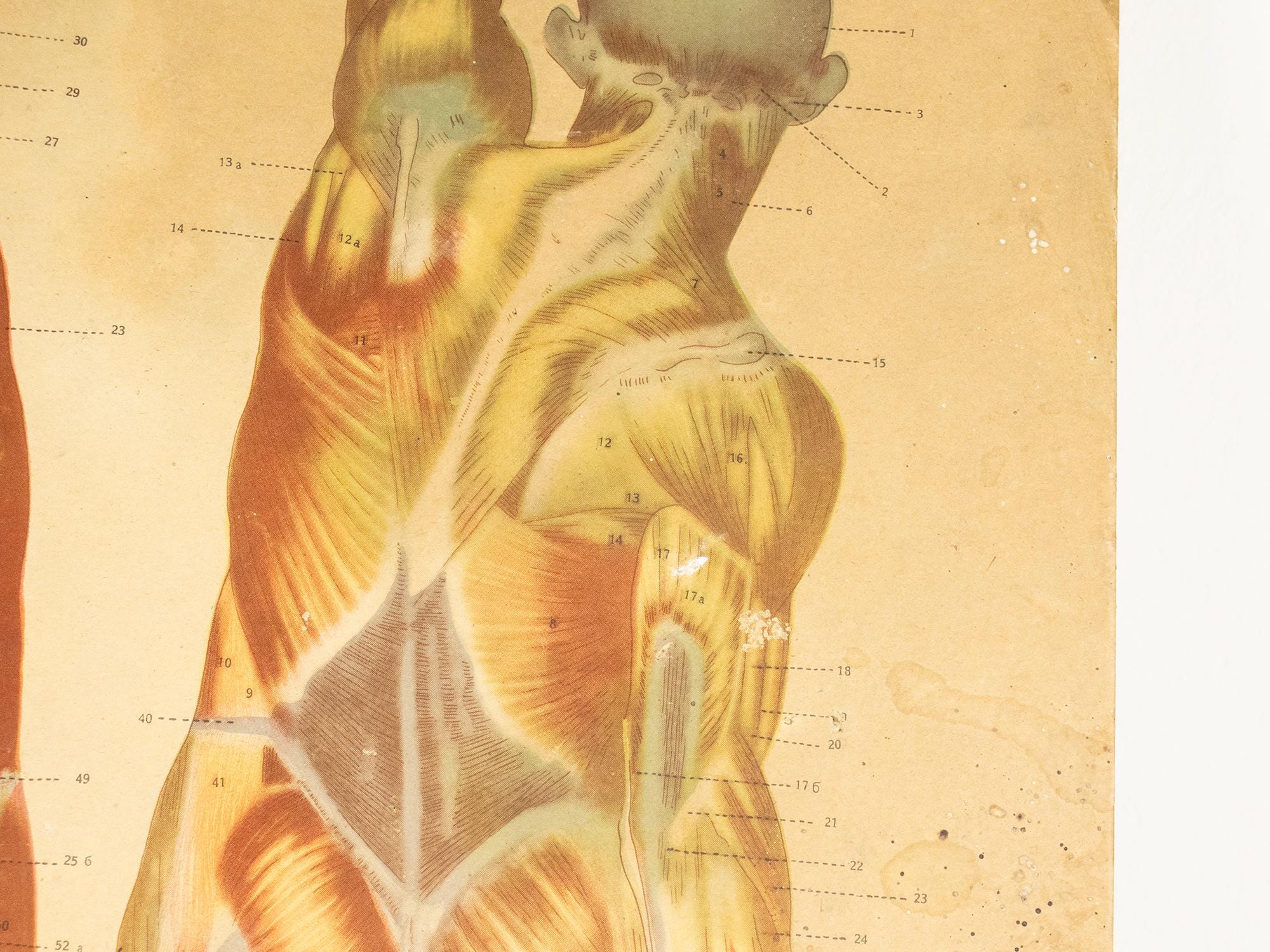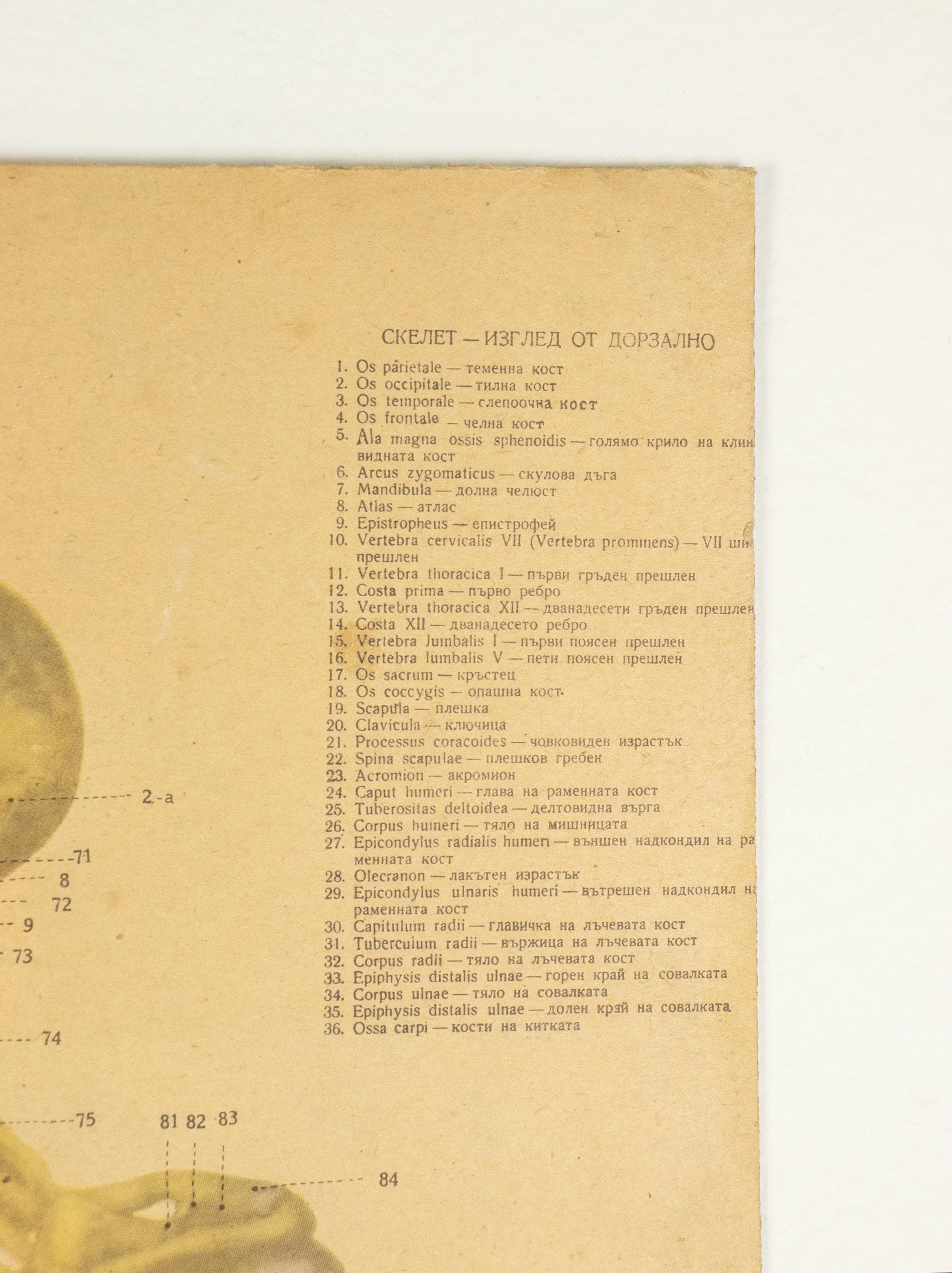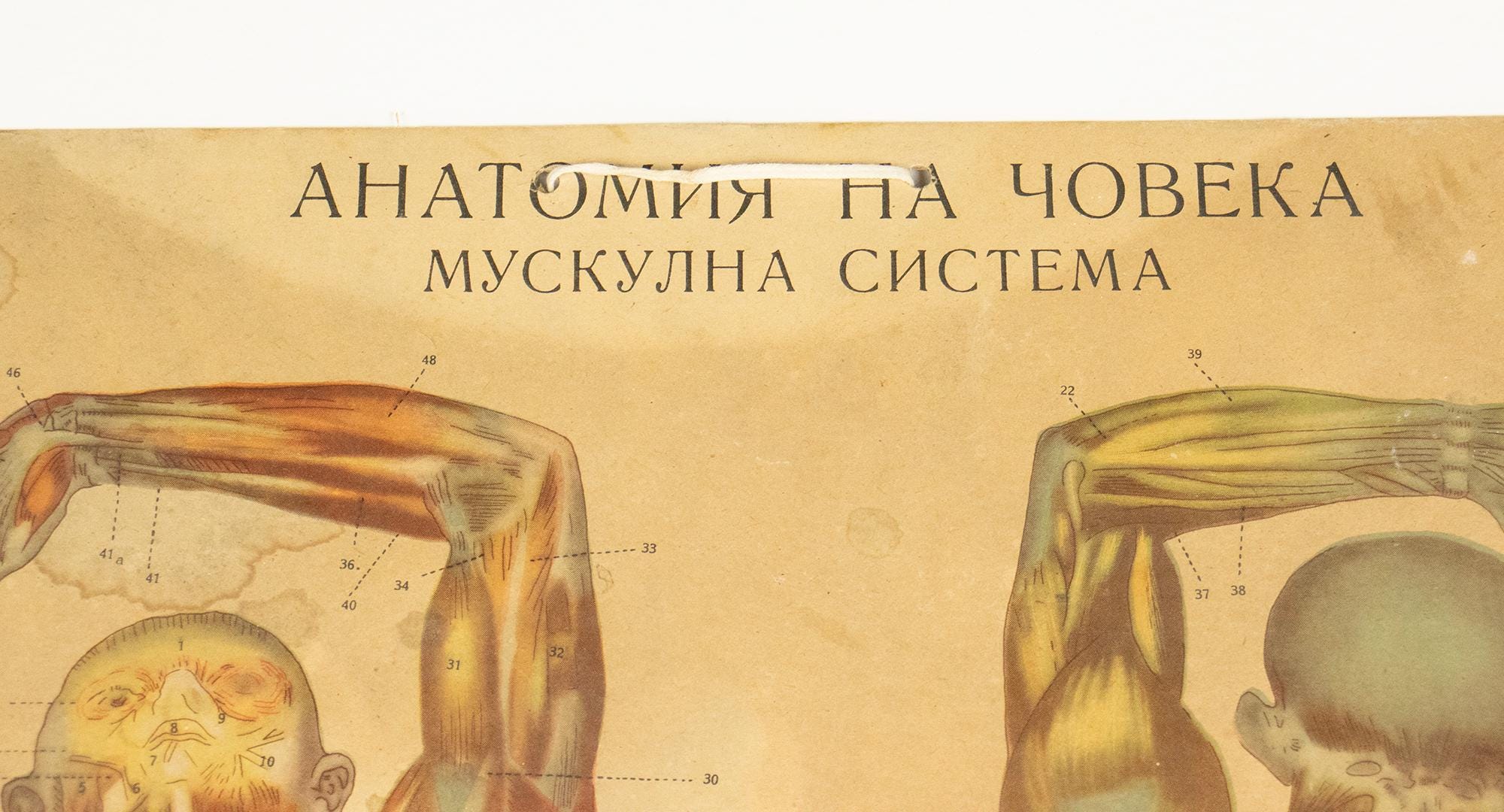 Originally produced as an educational classroom chart, this piece reflects a time when teaching relied on beautifully illustrated, large-format visuals. The detailed anatomical renderings are accompanied by Latin and Bulgarian terminology, making it both scientifically engaging and visually compelling.