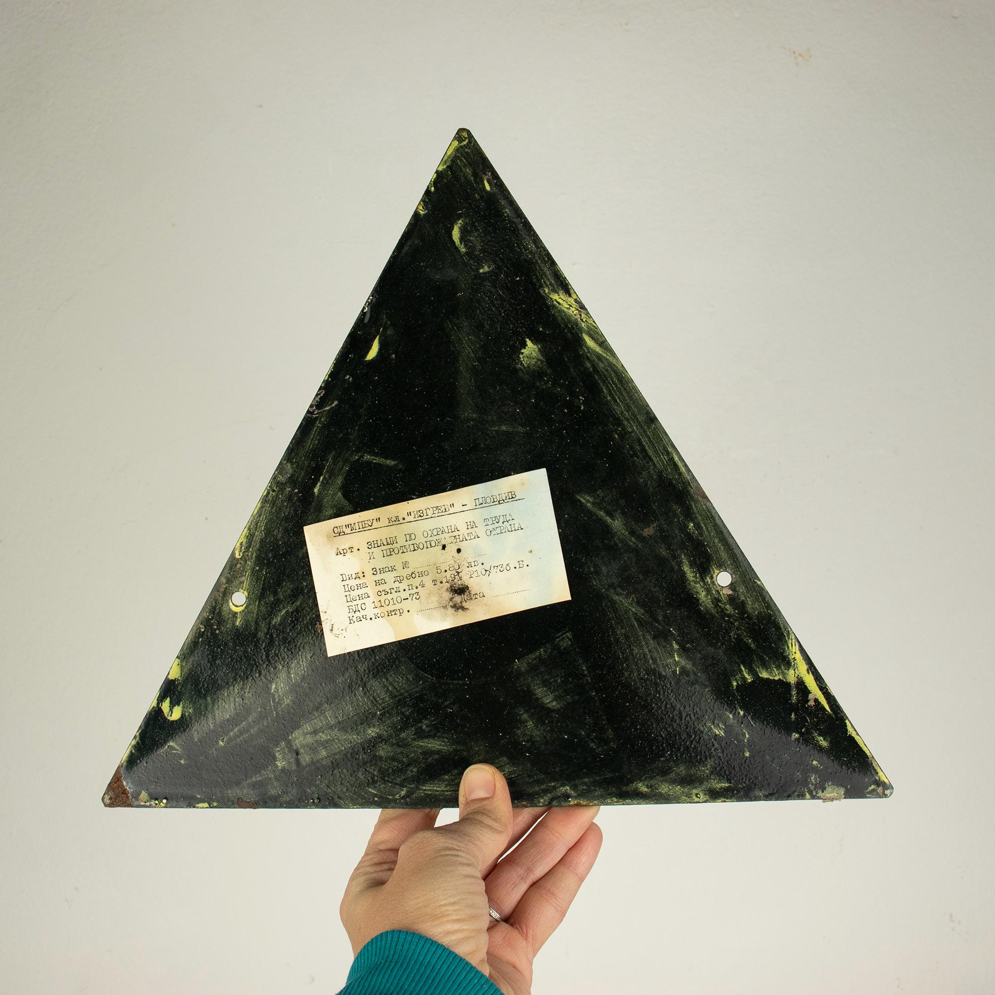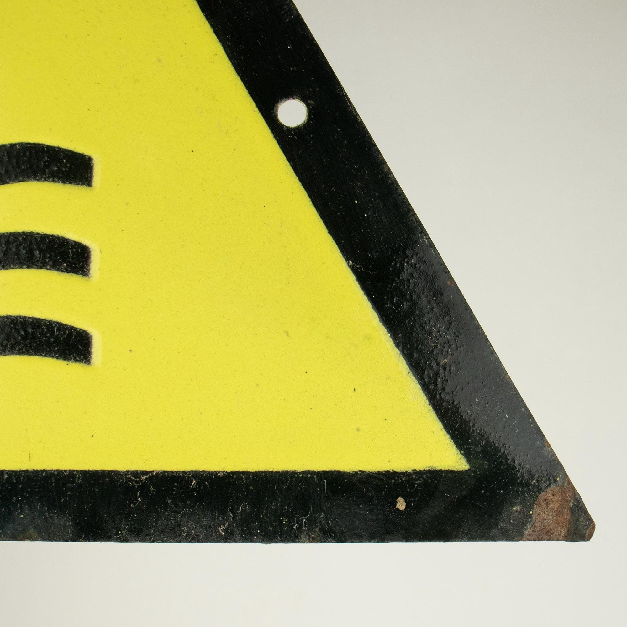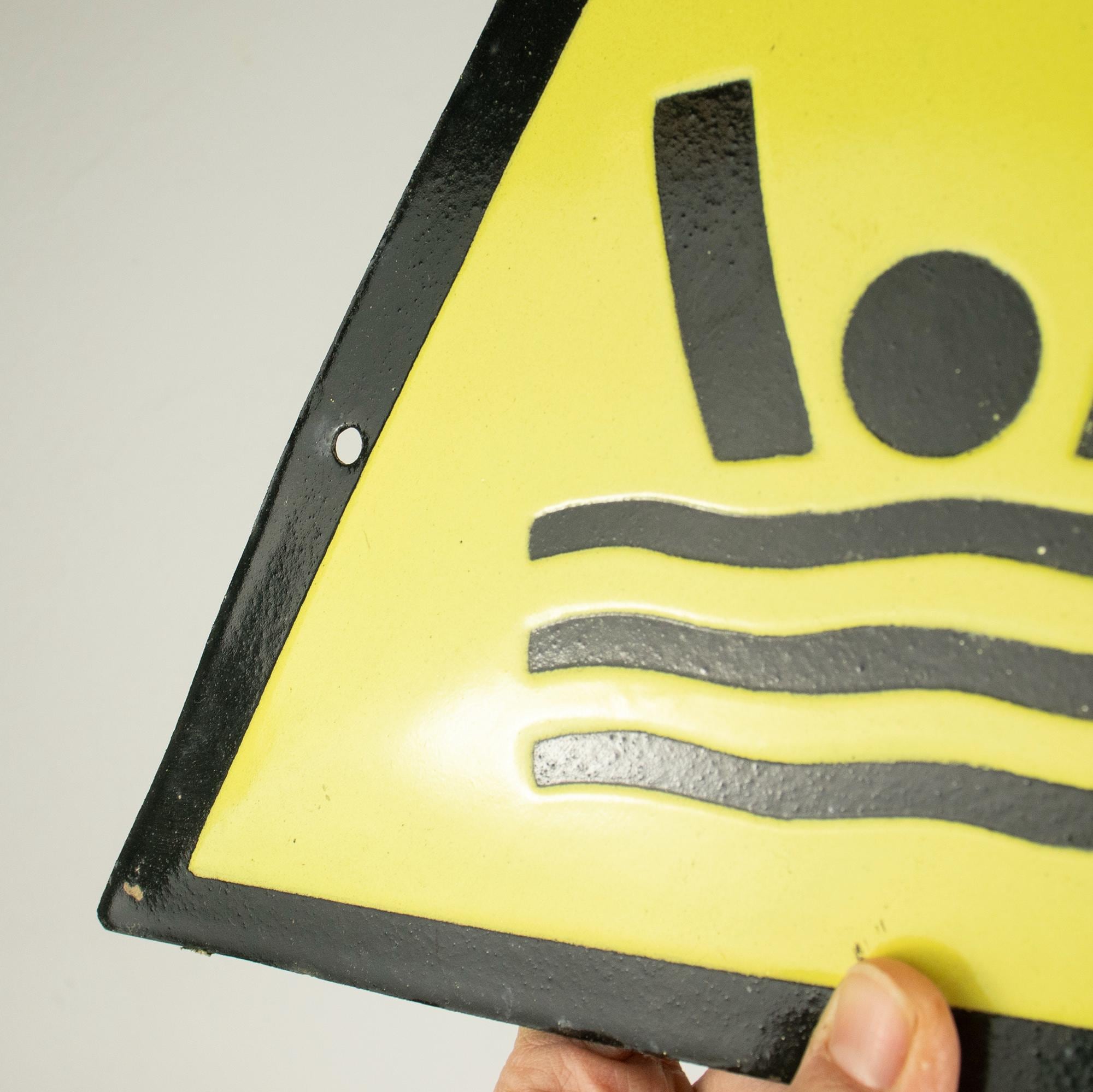 The graphic design is clean, highly recognisable, and increasingly sought after by collectors of industrial and safety signage.