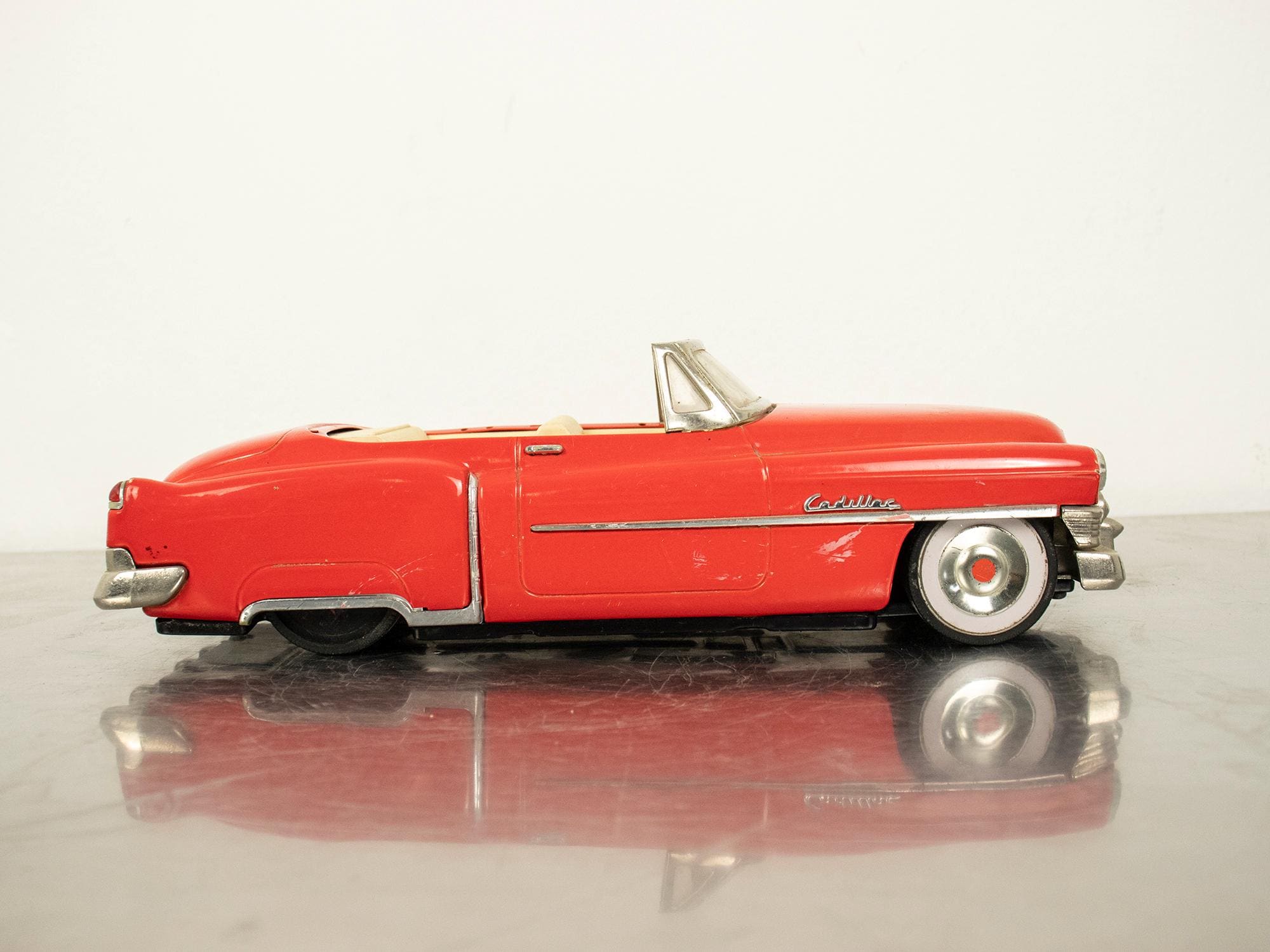 A vintage Japanese tin lithograph Cadillac convertible from the golden era of tin toy production, likely dating to the late 1950s or early 1960s.