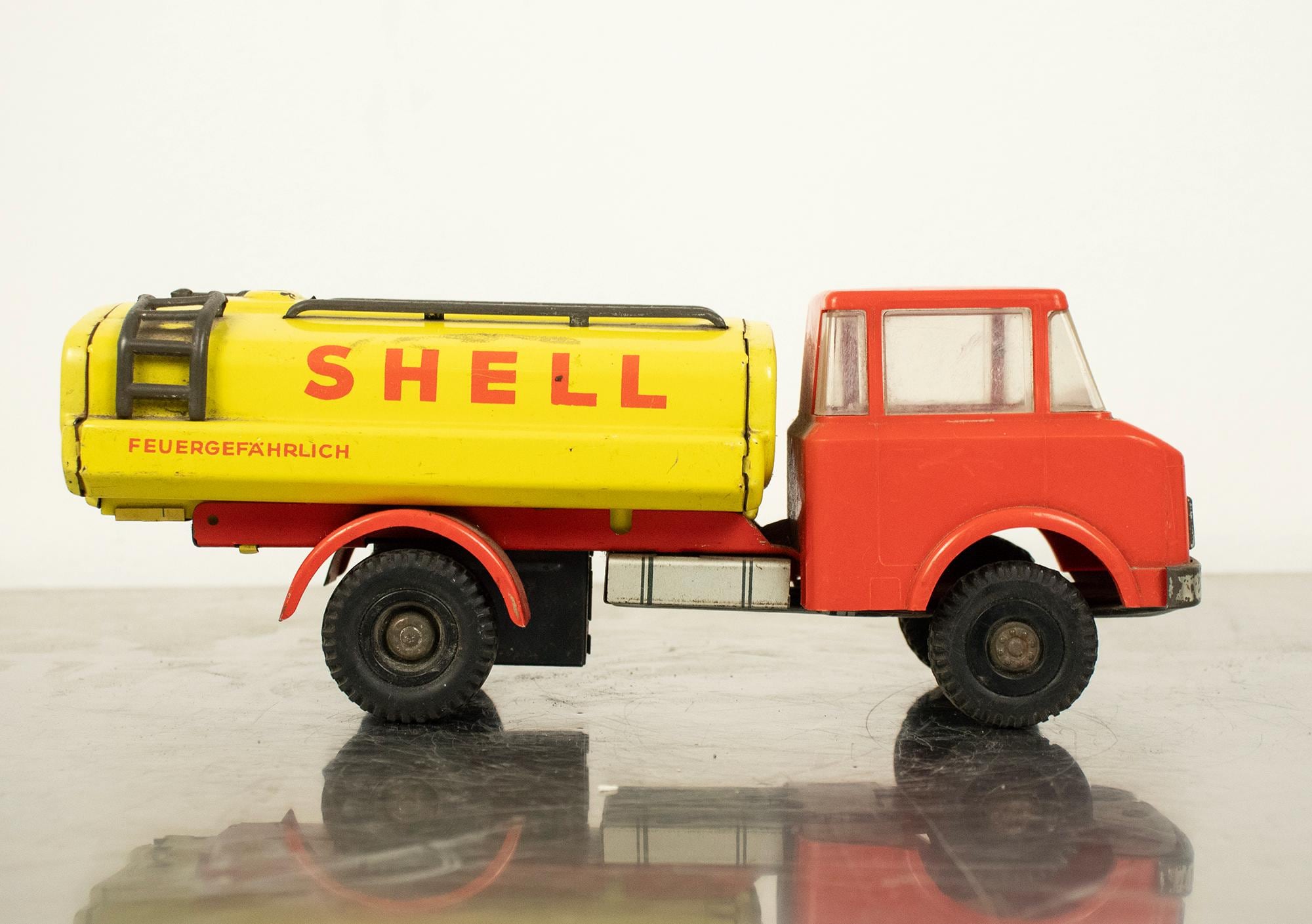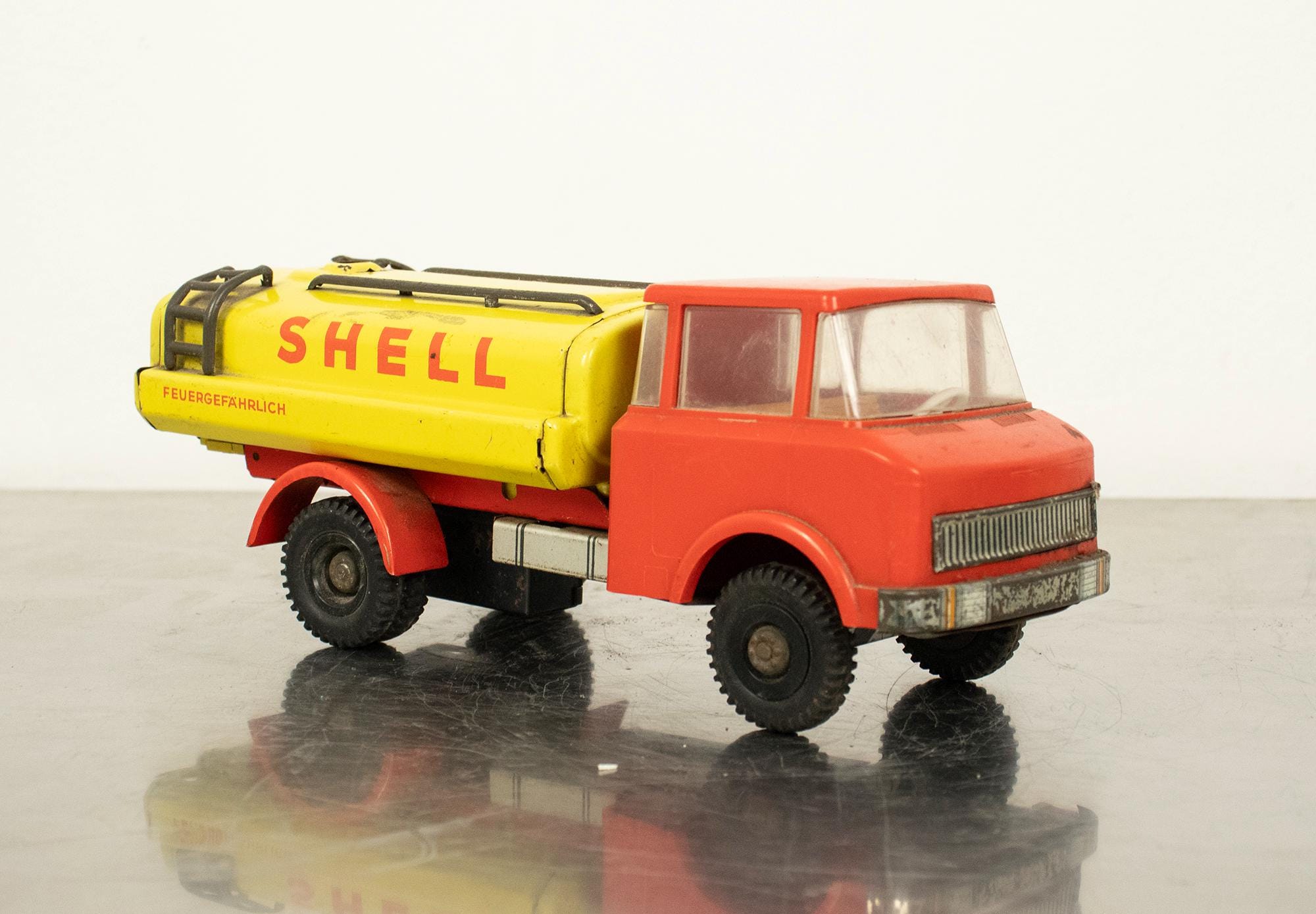 A highly collectable vintage Shell tanker truck manufactured by MS Brandenburg in the former East Germany (DDR). Known for their sturdy construction and distinctive designs, MS Brandenburg toys are increasingly sought after by collectors of European vintage vehicles.