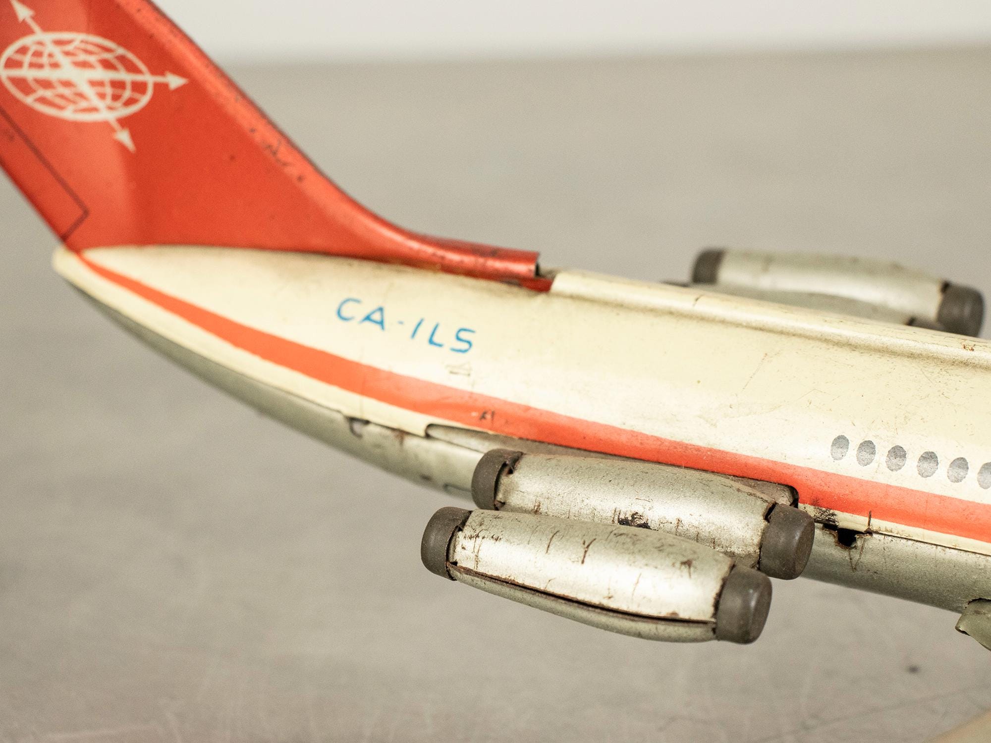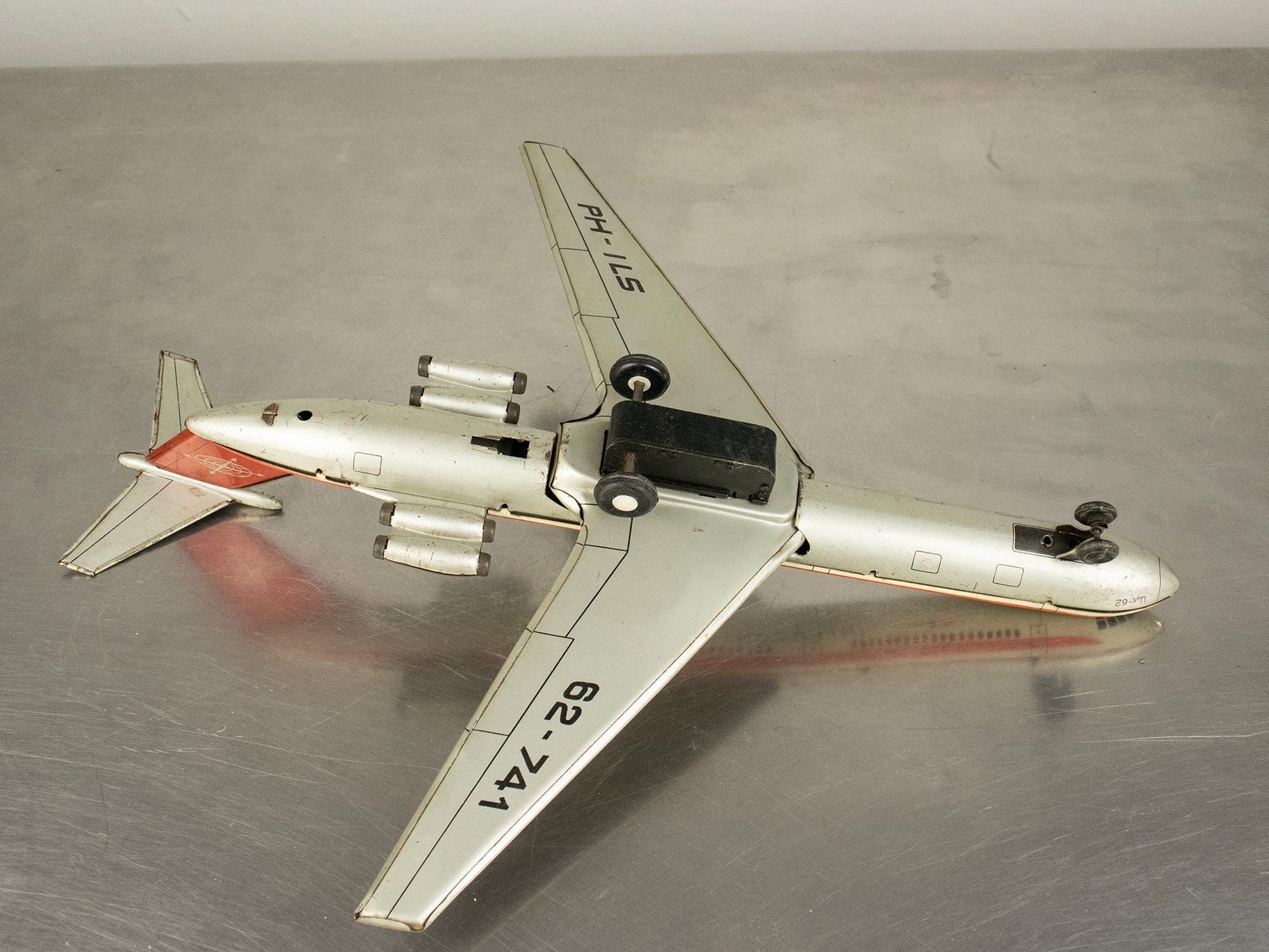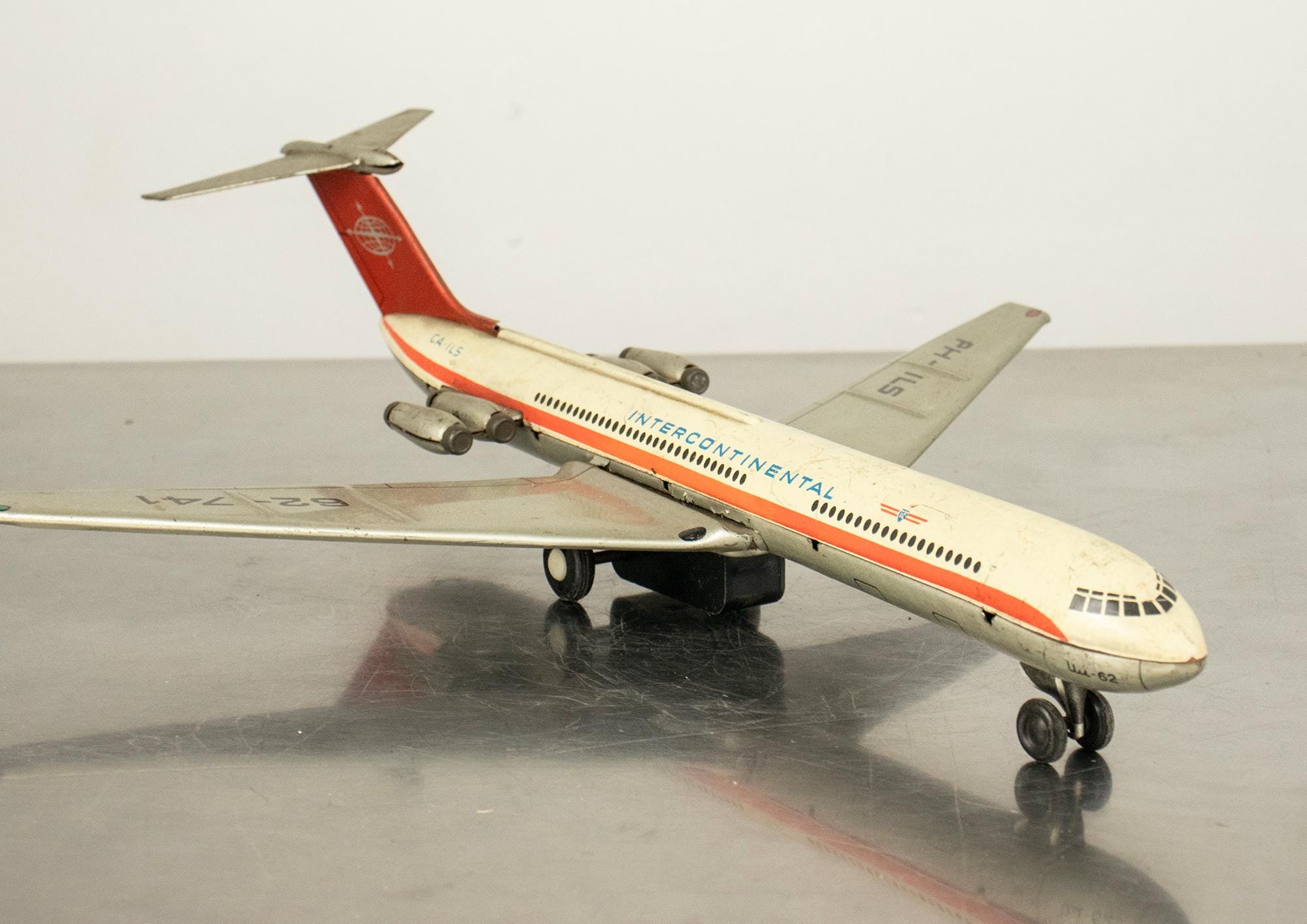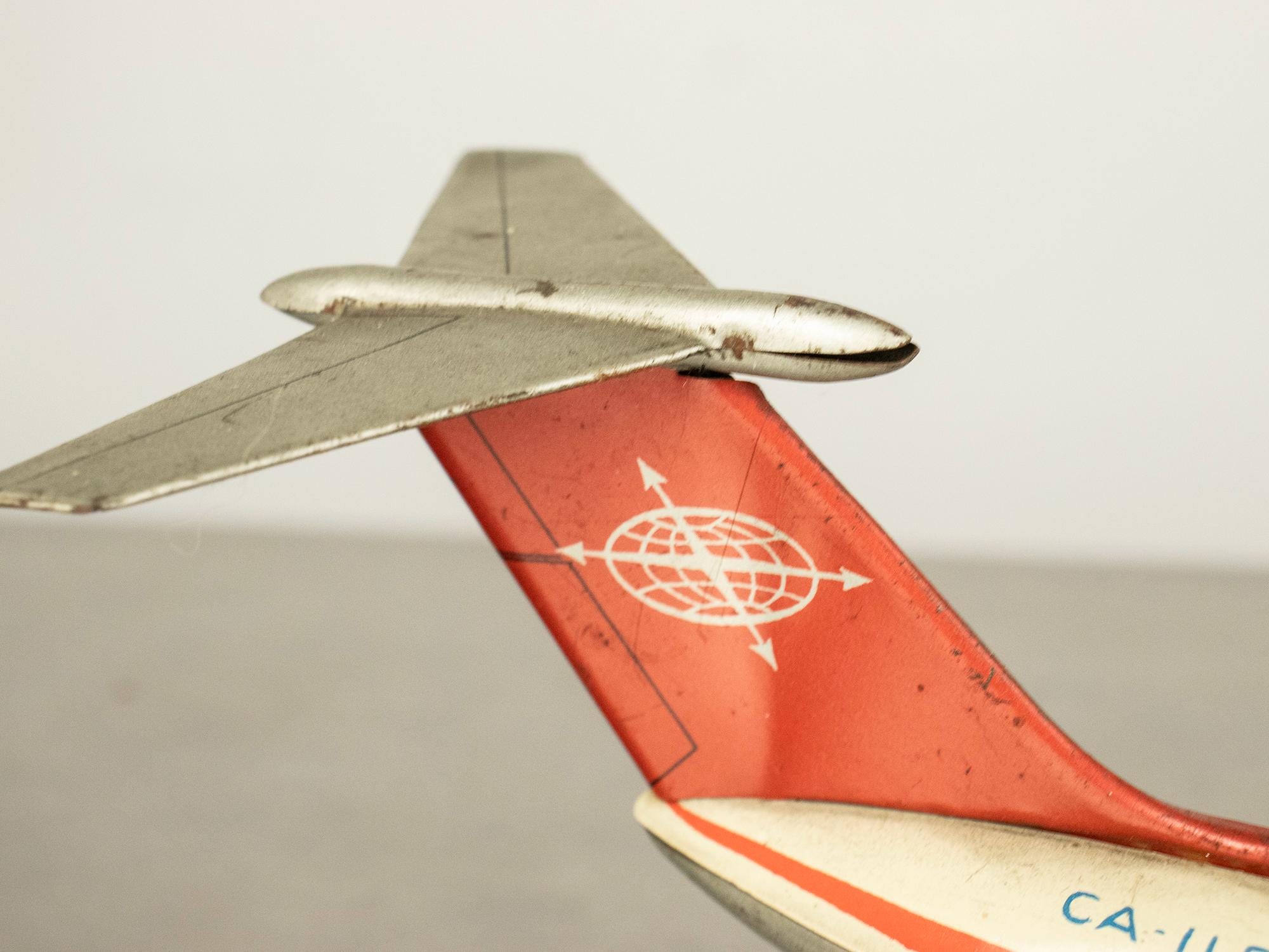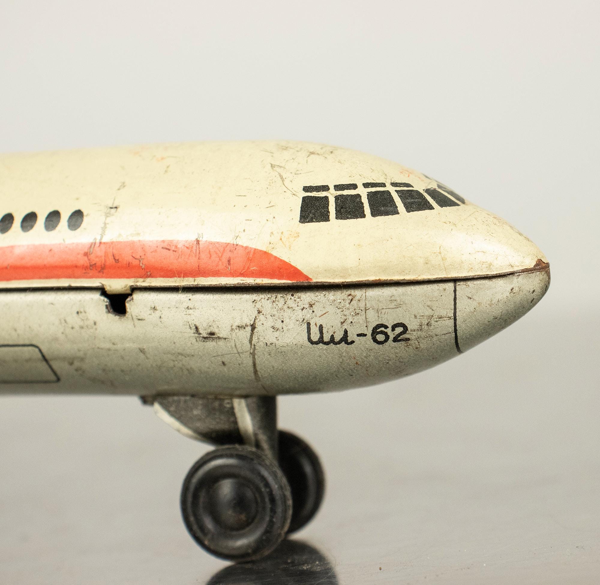Authentic vintage Ilyushin Il-62 tin aeroplane model manufactured by VEB Plasticart in the former GDR (East Germany), circa 1970–1980.