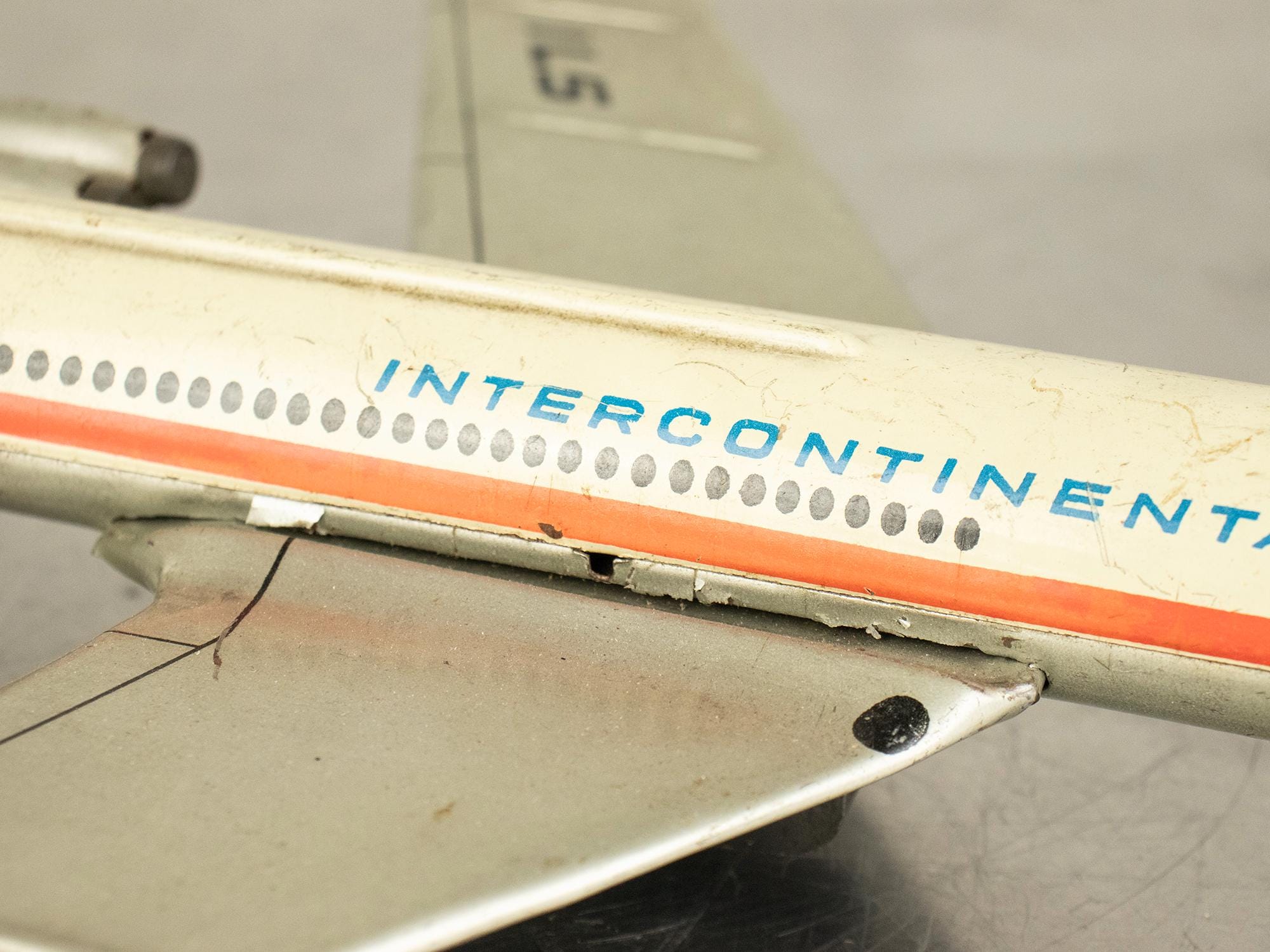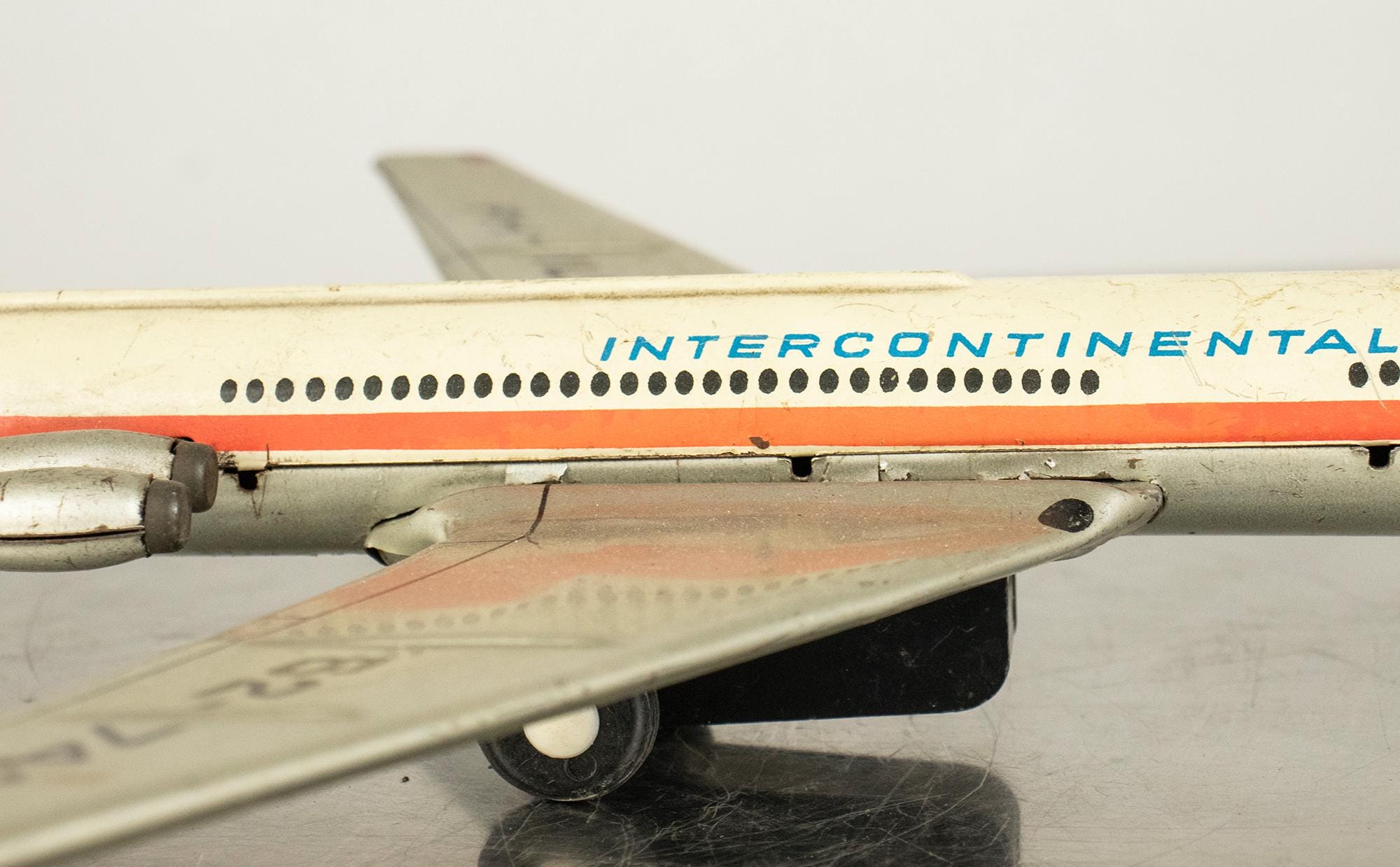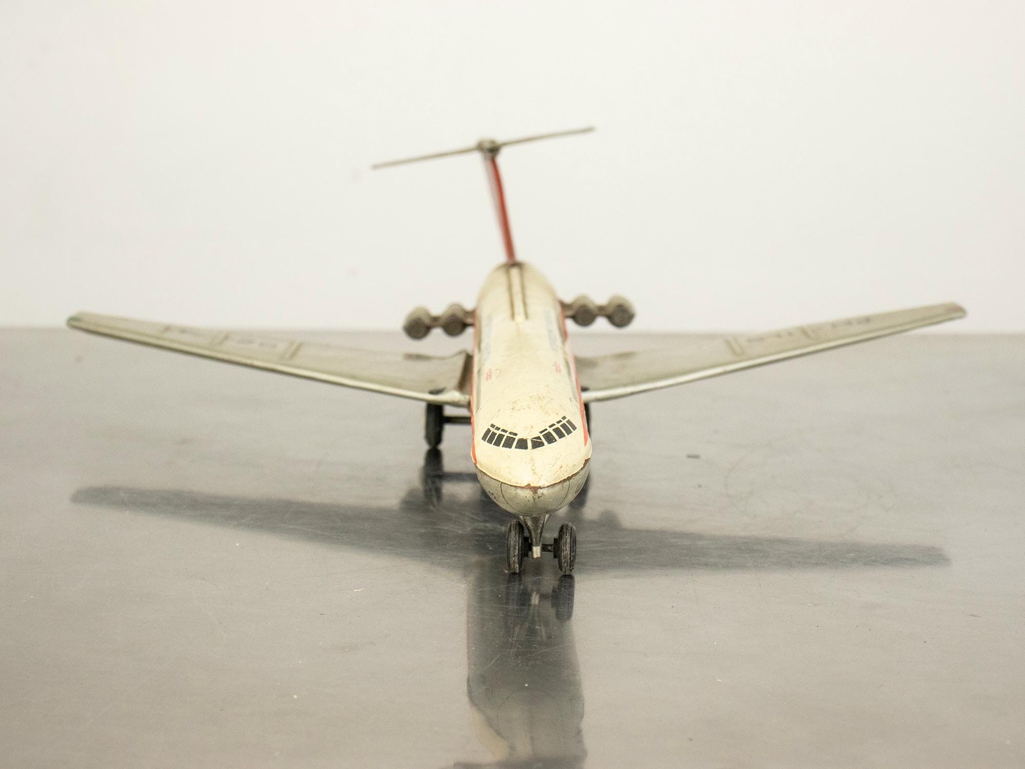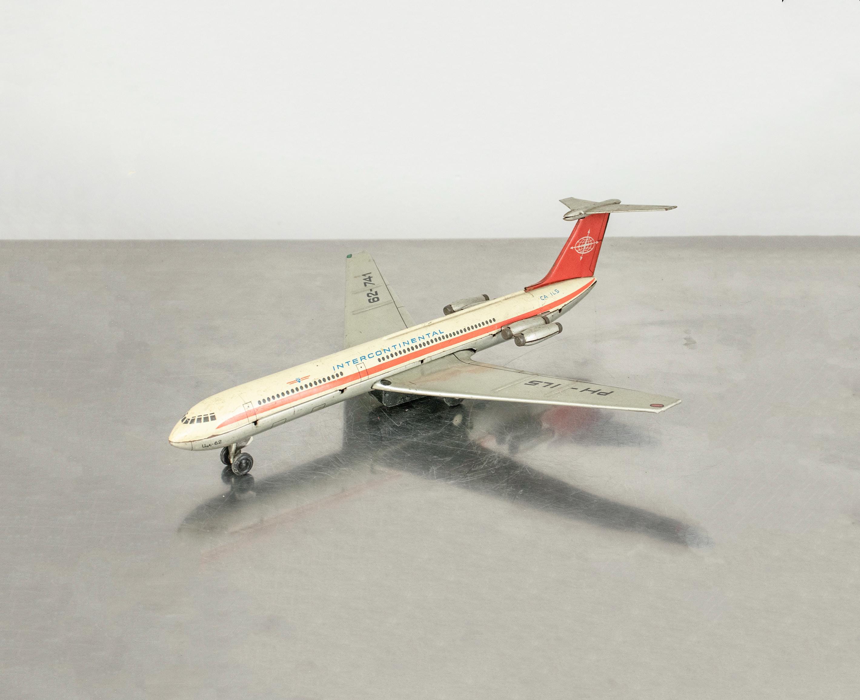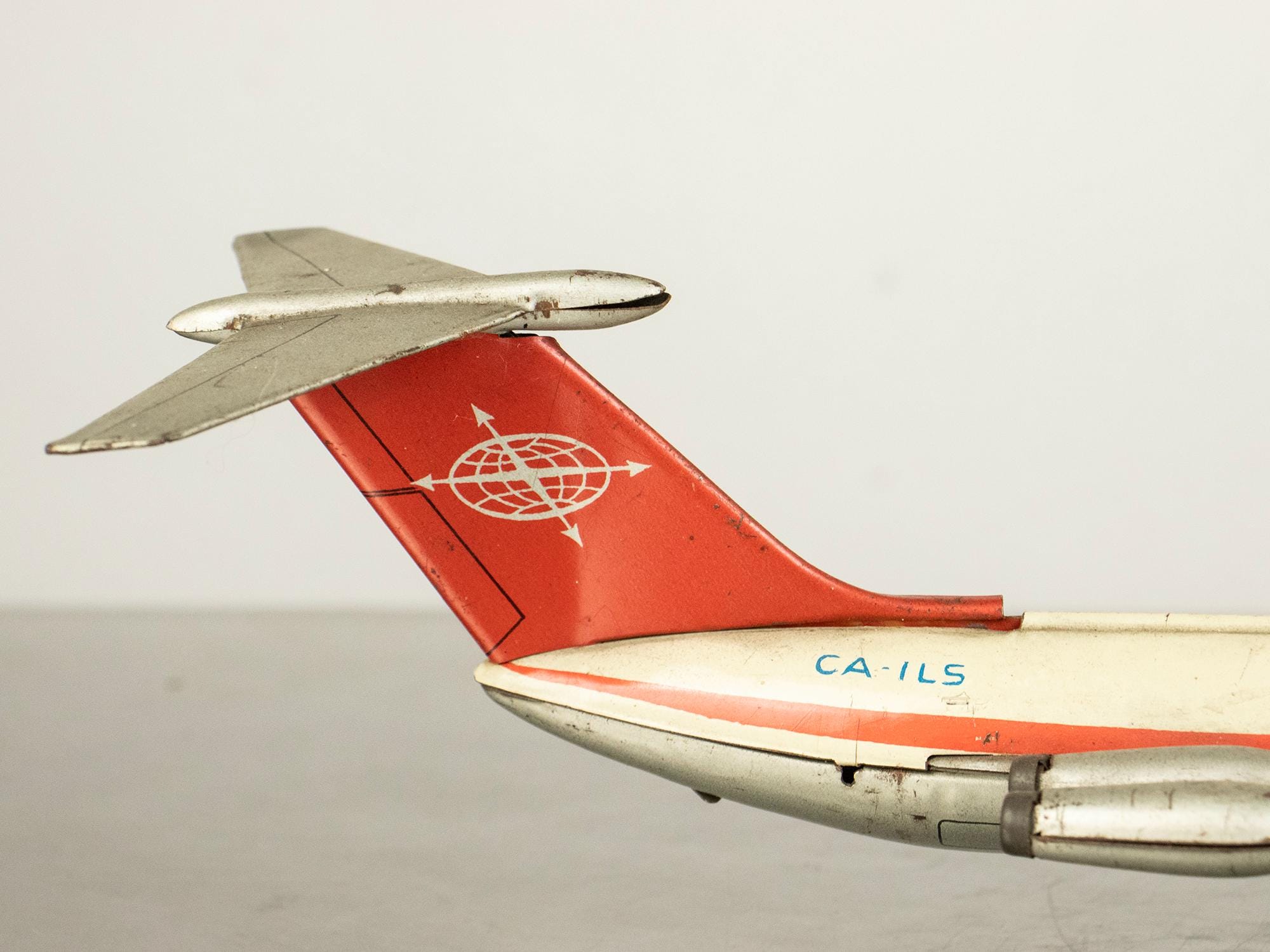 Authentic vintage Ilyushin Il-62 tin aeroplane model manufactured by VEB Plasticart in the former GDR (East Germany), circa 1970–1980.