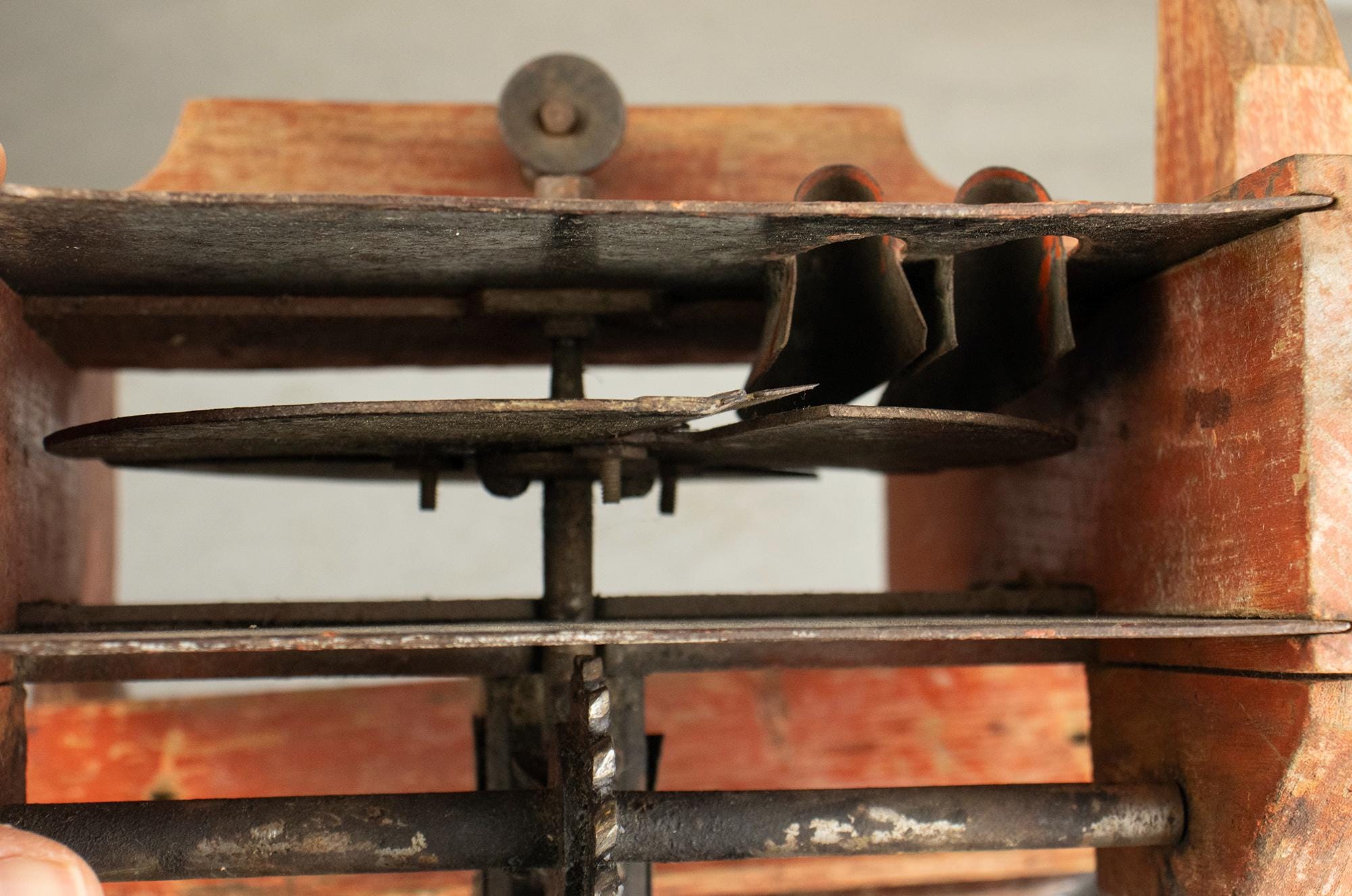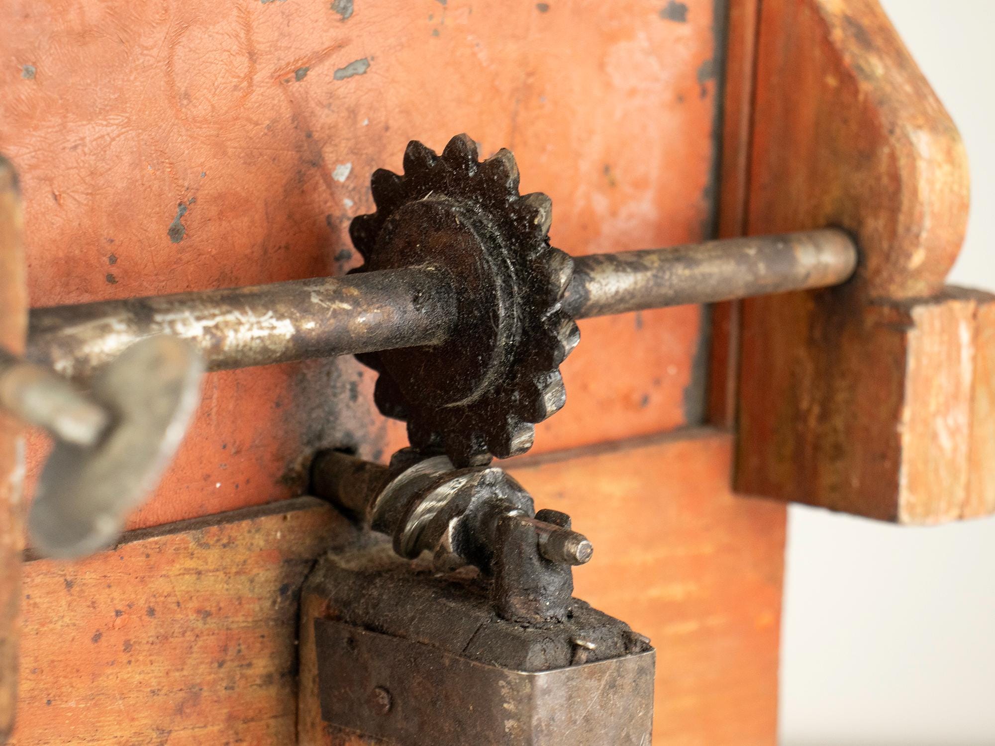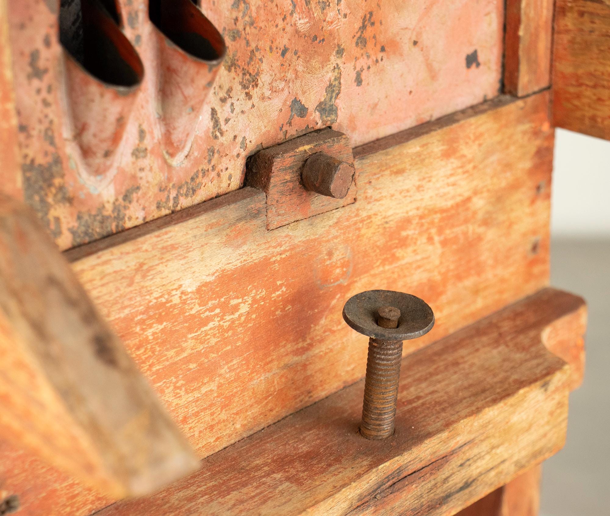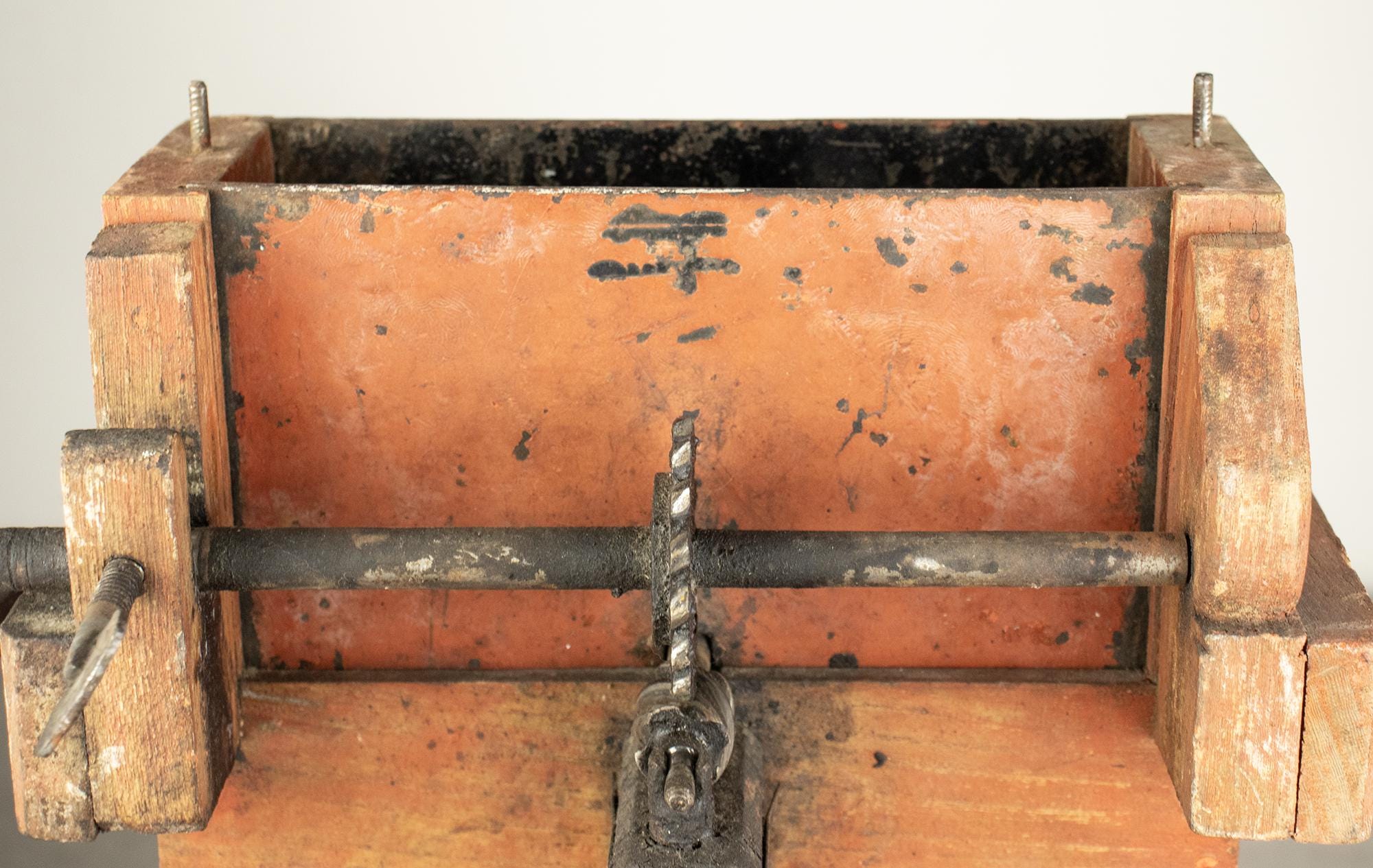 Unlike the common small cast-iron kitchen slicers, this is a large bench-mounted model with a strong architectural presence. The original painted surface has developed a rich, natural patina over decades of use, giving it warmth and authenticity that cannot be replicated.