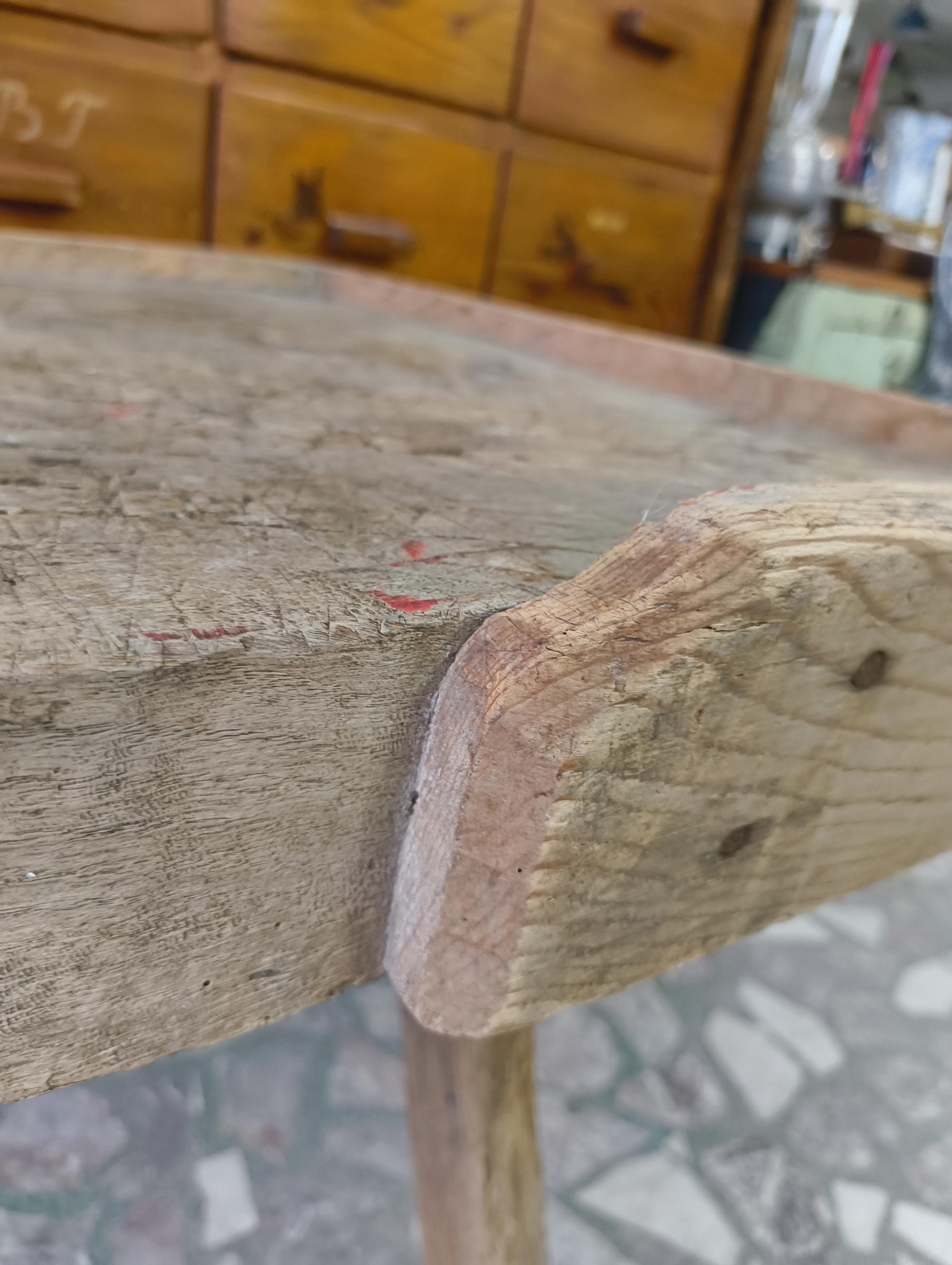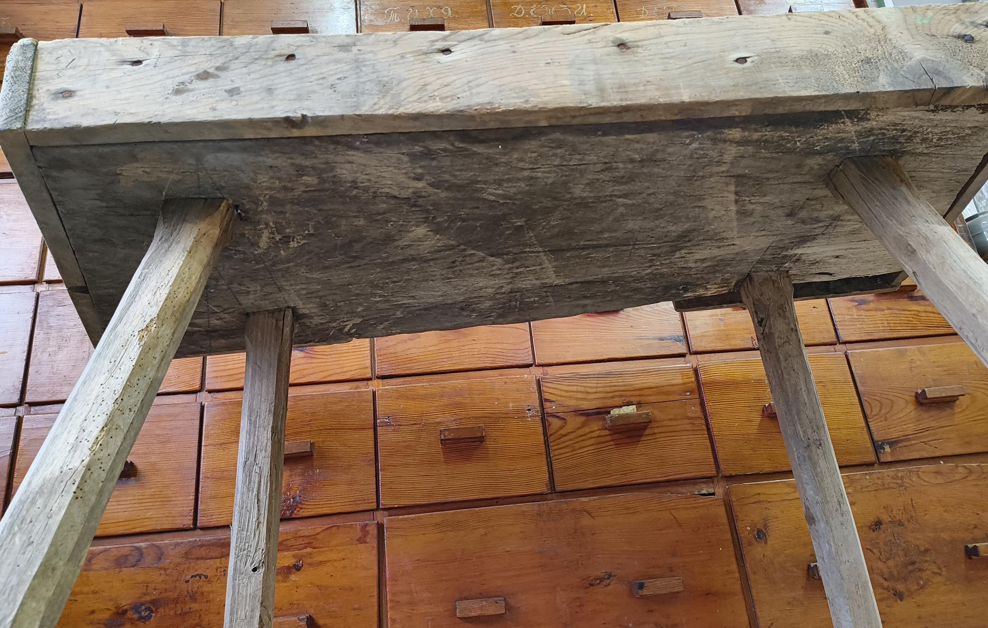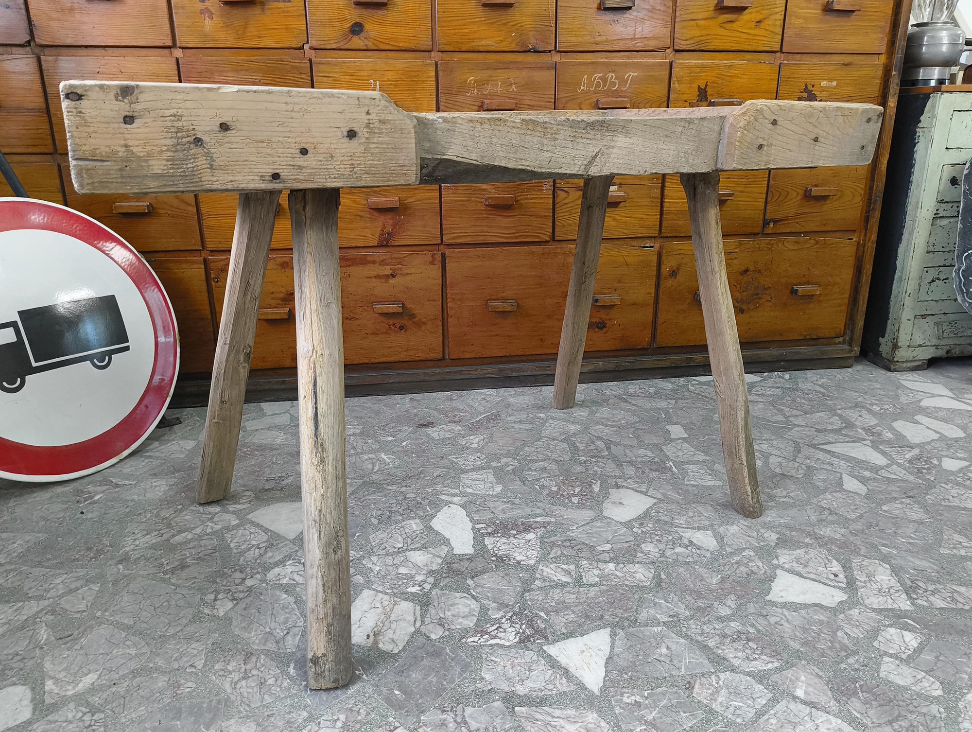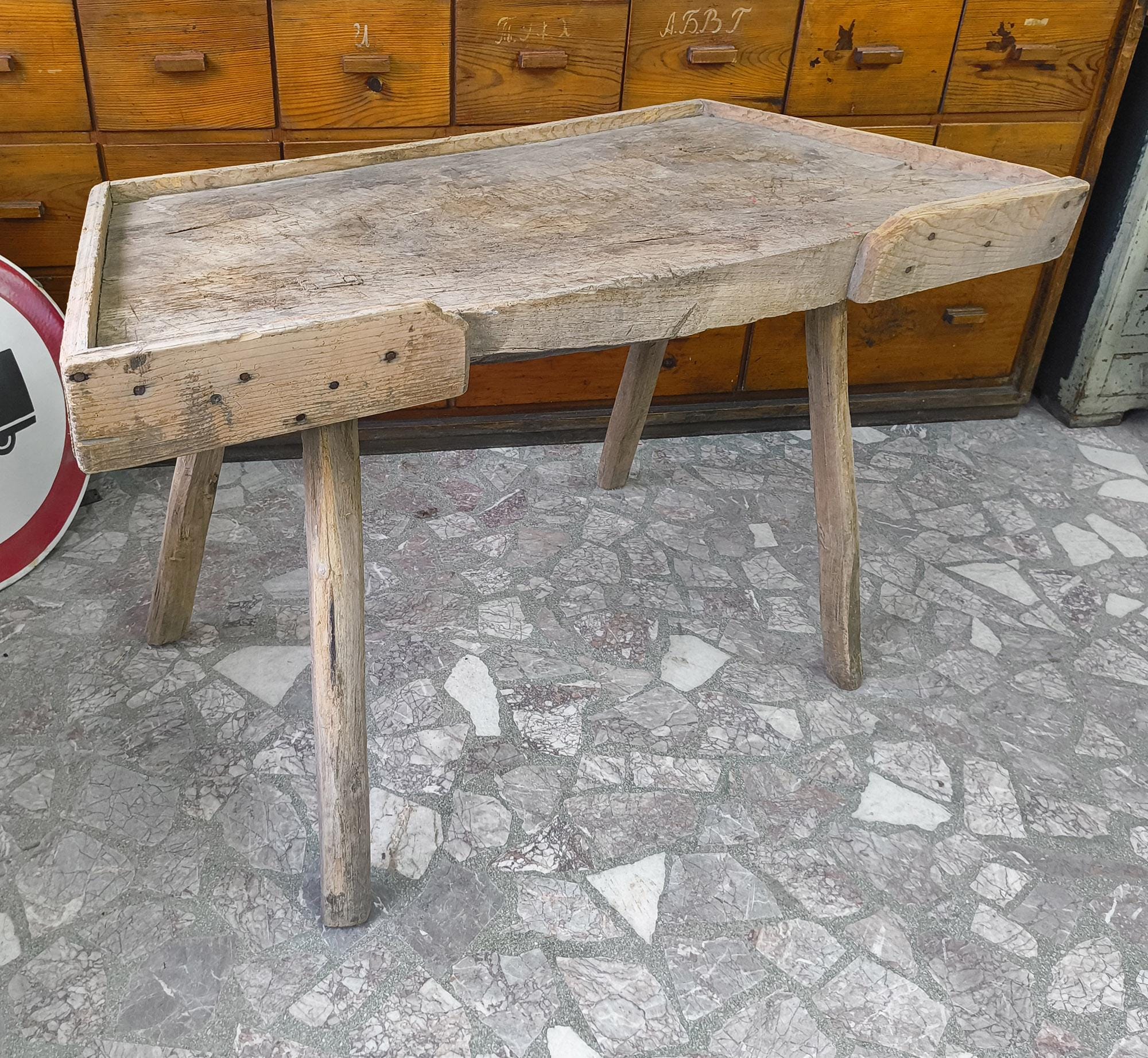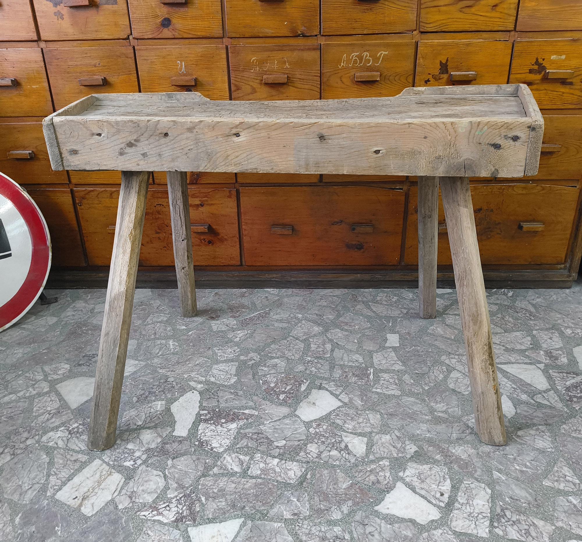 Authentic vintage butcher table sourced from rural Hungary. A simple, honest piece made from solid wood, with a thick working surface and a well-used top.